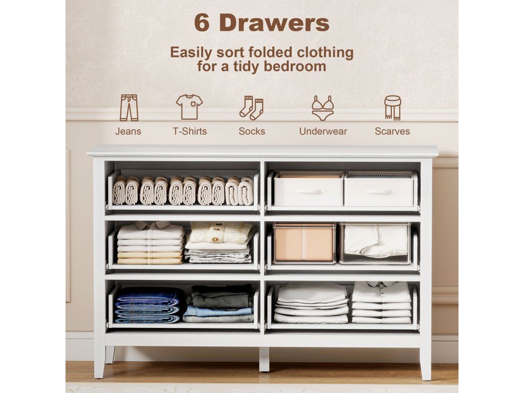 ✔ Šest zásuvek a široká pracovní plocha udrží oblečení a nezbytnosti úhledně uspořádané.