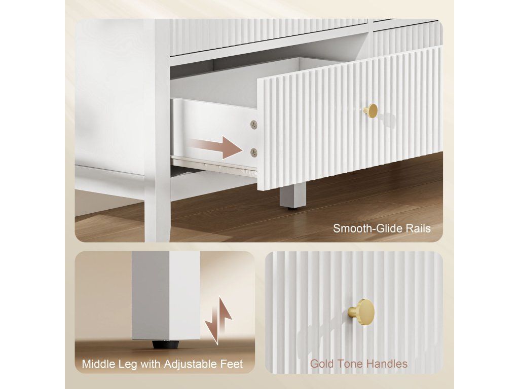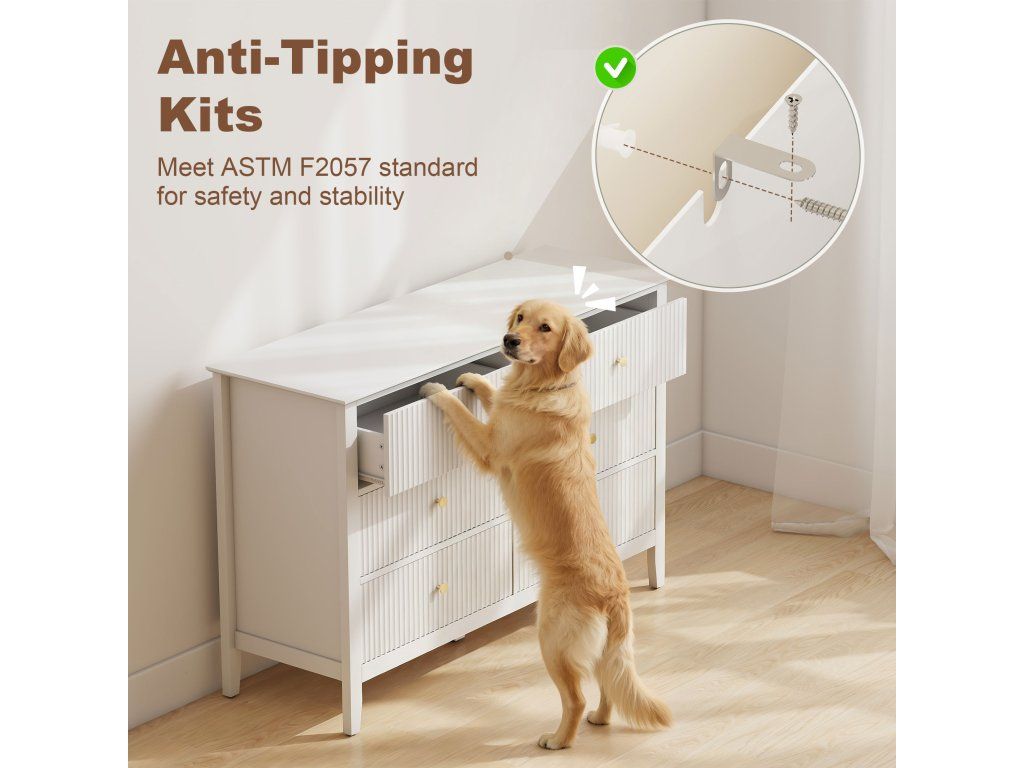 Zesílená, stabilní konstrukce: Přídavná středová noha s nastavitelnými nožičkami zajišťuje stabilitu při každodenním používání a proti převrácení poskytuje větší bezpečnost. Díky tomu bude vaše komoda stabilní, bezpečná a vhodná pro rodinu po mnoho let.
