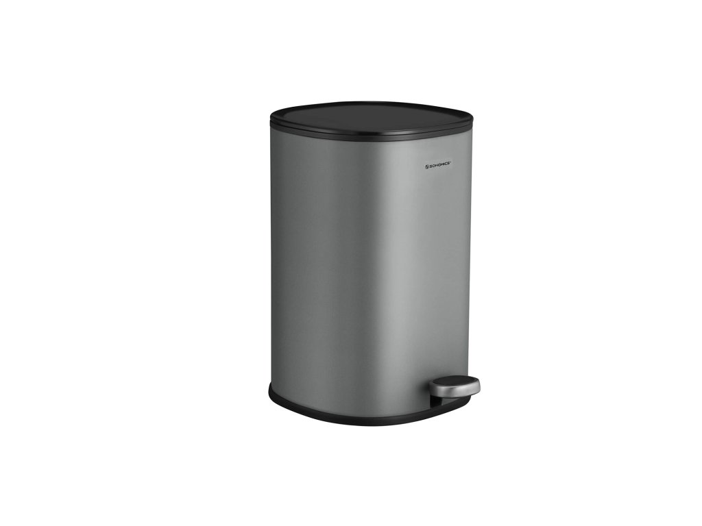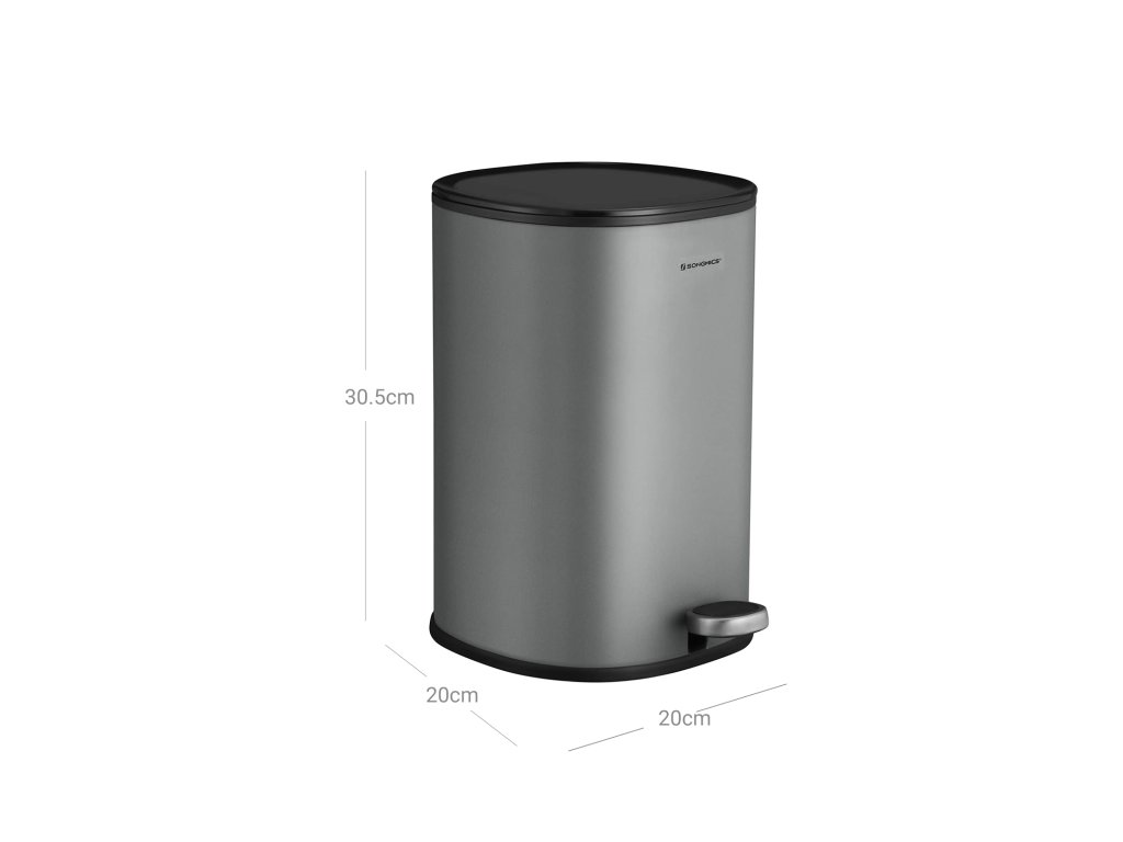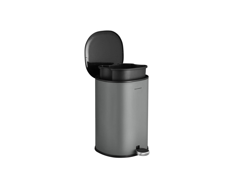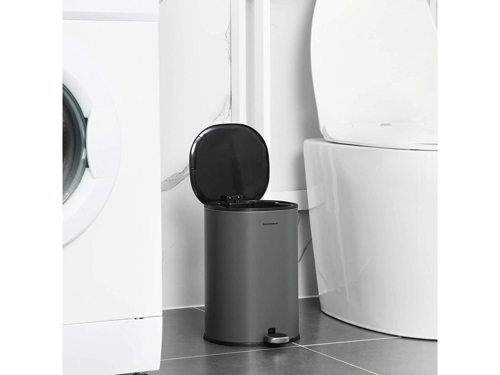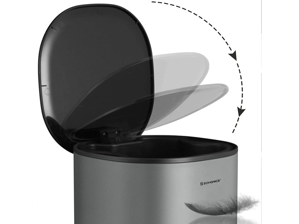 Koš na odpadky, objem 5 l, ocelový pedálový koš, s vnitřním kbelíkem, víkem s měkkým zavíráním a madlem, do koupelny, na toaletu, šedá a černý.