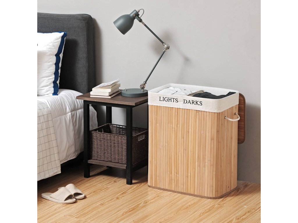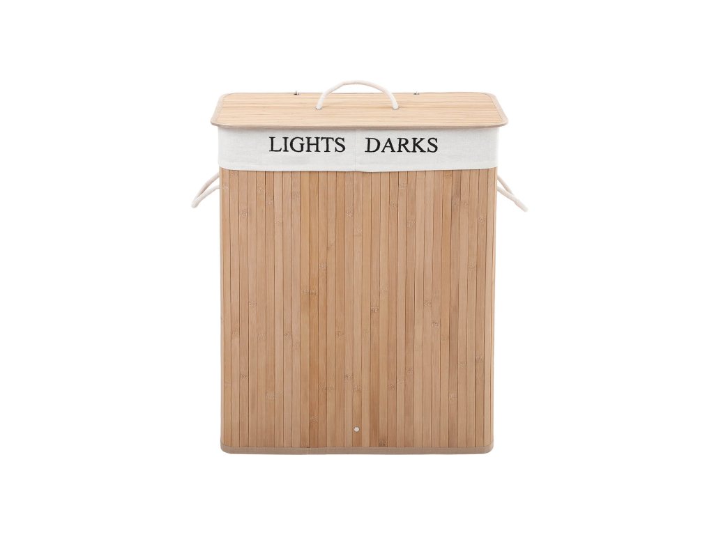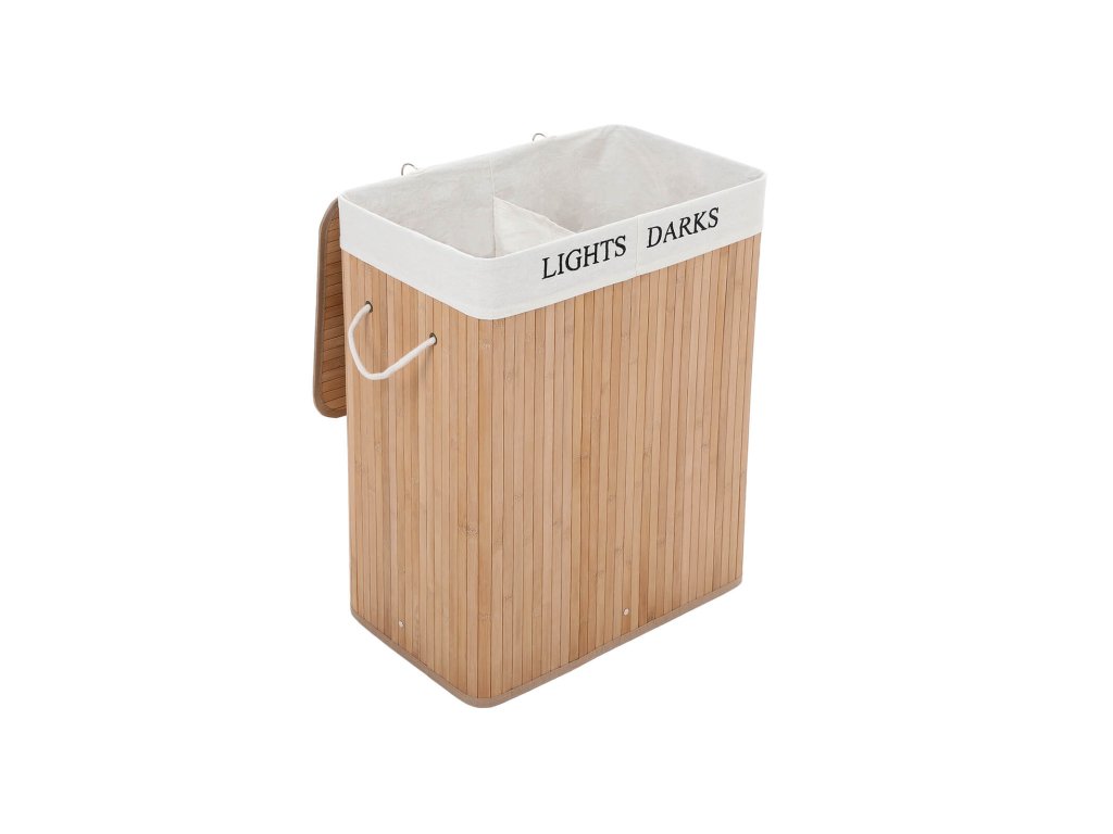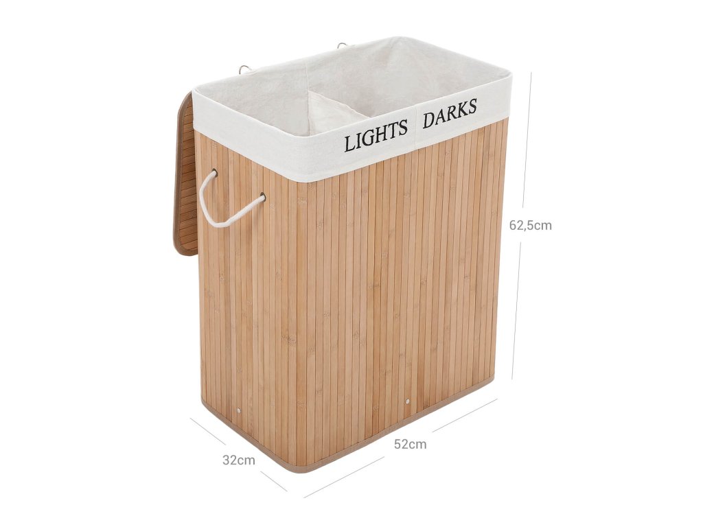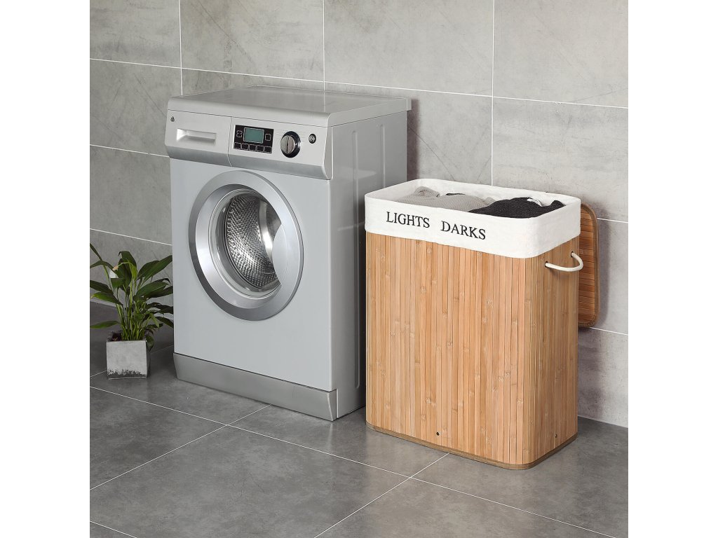 Koš na prádlo 100L (62,5 x 52 x 32 cm) bambusový skládací box na prádlo se 2 přihrádkami koš na prádlo s vyjímatelným pytlem na prádlo., bambus, přírodní.