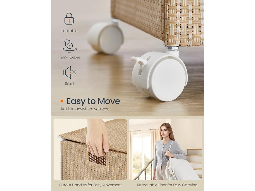 【VYJÍMATELNÁ A PRANÁ PODLOŽKA】Košík obsahuje vyjímatelný a pratelný vak na prádlo s uchy, který usnadňuje přepravu prádla do pračky.
