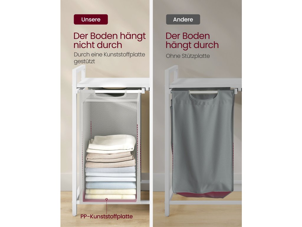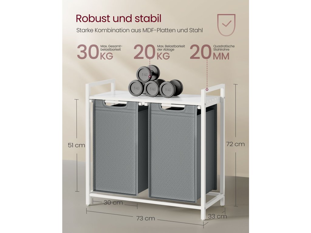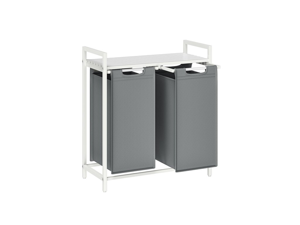 Koš na prádlo, 2 přihrádky, koš na prádlo s policí, koš na prádlo, taška na prádlo z oxfordské tkaniny, rozkládací, vyjímatelná, kovový rám, 2 x 46 D, 73 x 33 x 72 cm, bílá/světle šedá.