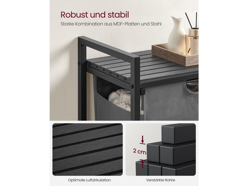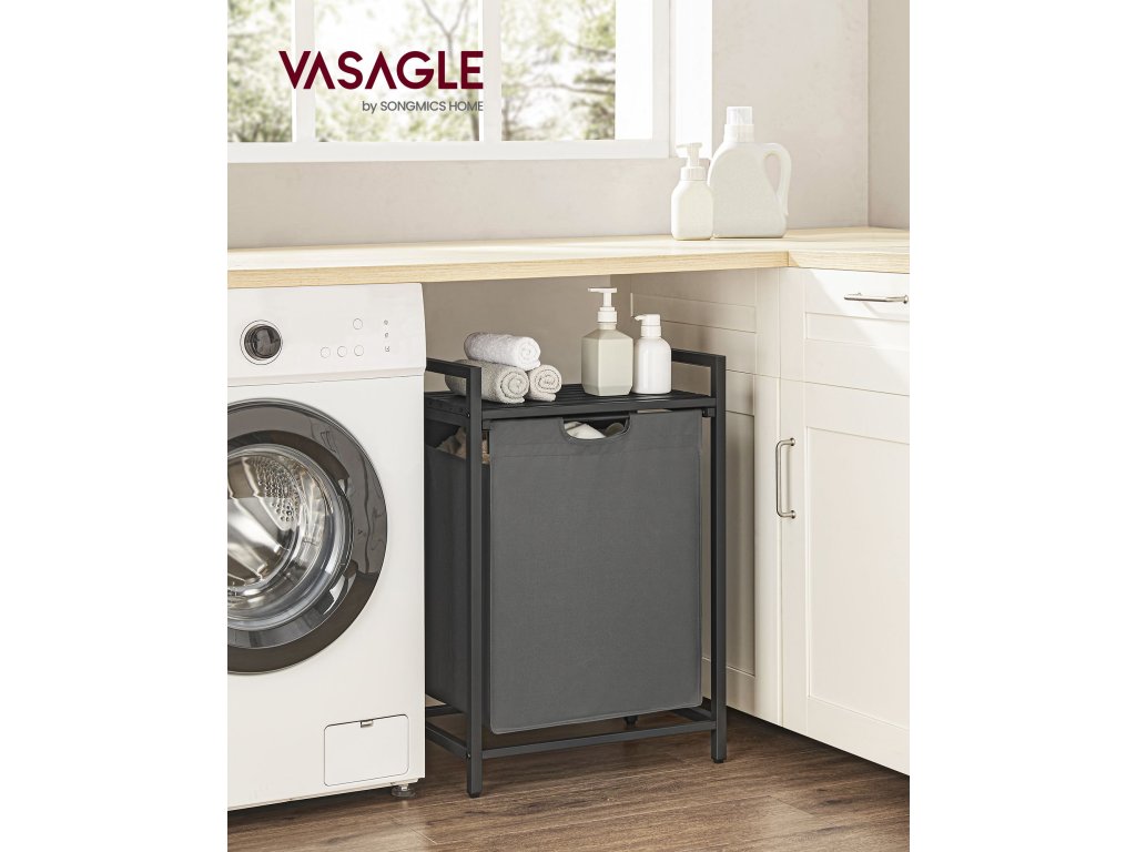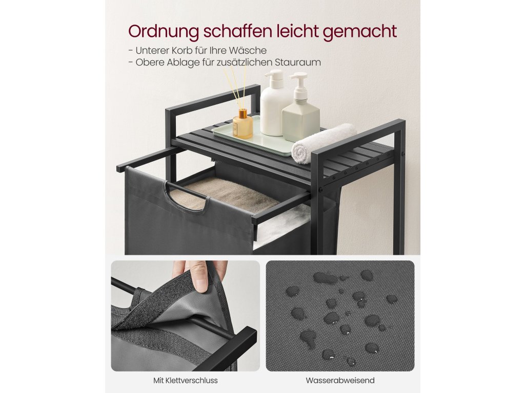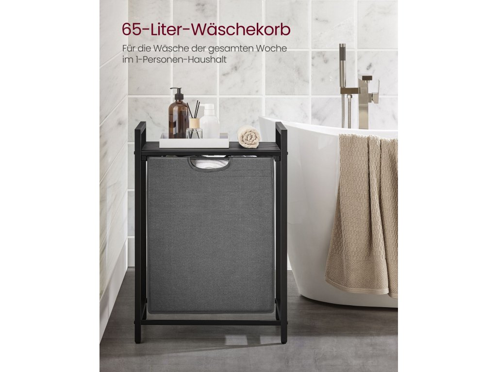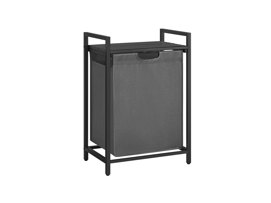 Koš na prádlo, koš na prádlo, výsuvný a vyjímatelný vak na prádlo, police, kovový rám, 65 l, 50 x 33 x 72 cm, černošedá a šedá.