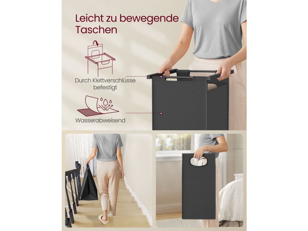 Robusto y estable Esta cesta de lavandería está construida con tubos de acero de 0,8 pulgadas y tablero de partículas de 0,8 pulgadas, lo que permite que el estante central pueda soportar hasta 200 libras. También cuenta con patas ajustables para mayor estabilidad en suelos ligeramente irregulares y un kit anti-punta para mayor seguridad Forros extraíbles y repelentes al agua: con cierres de velcro, estos forros se pueden quitar y llevar sin esfuerzo a la lavadora. Hechos de tela Oxford de calidad, estos forros son repelentes al agua para una fácil limpieza y durabilidad.| Kategorie: | Koše na prádlo |