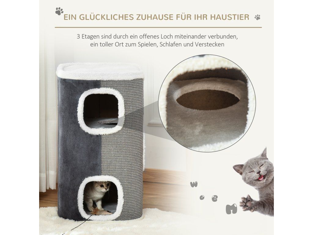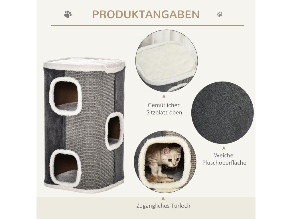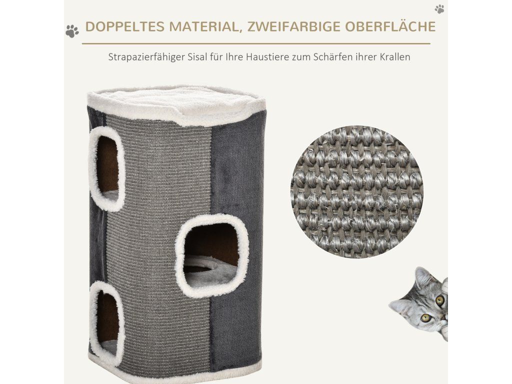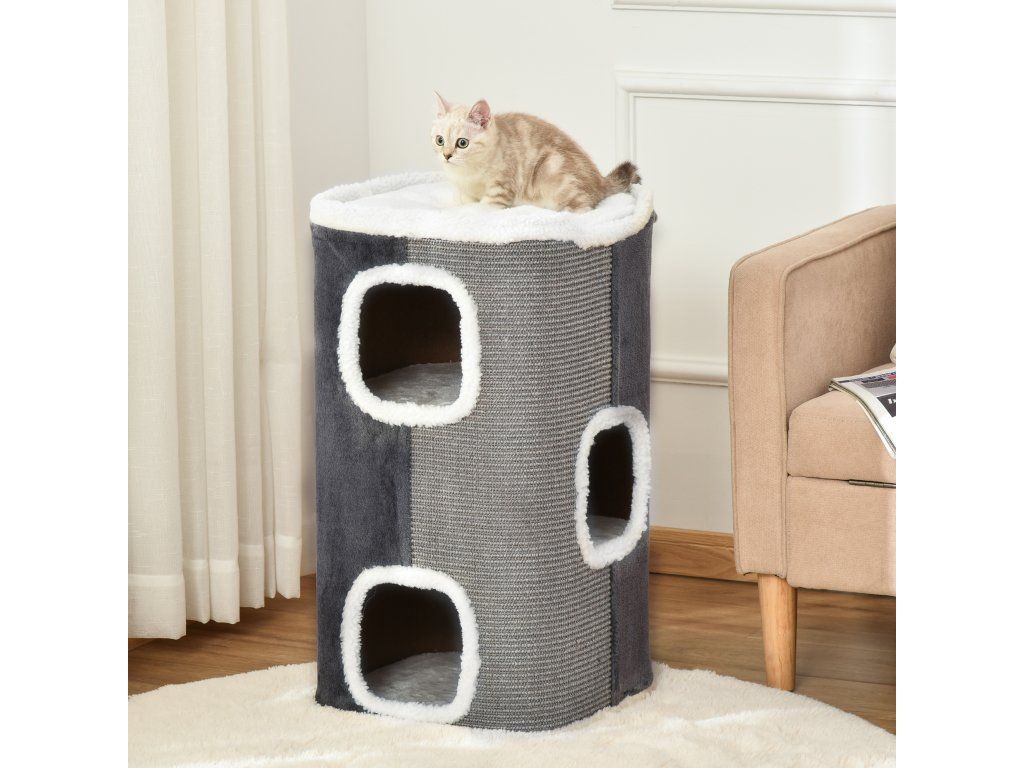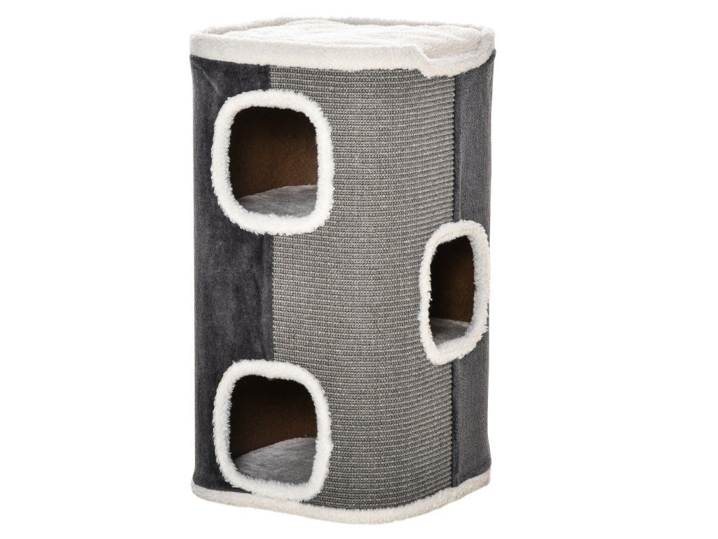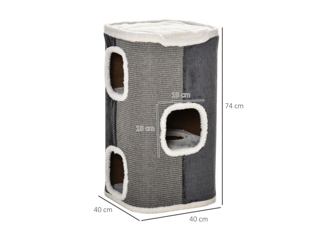 Rozmazlujte svou milovanou kočku luxusním škrabadlem, které bylo speciálně navrženo pro pohodlný a zdravý život vašeho kočičího přítele. Díky měkkému a plyšovému potahu nabízí perfektní útočiště pro zdřímnutí a relaxaci. Tři propojené jeskyně vybízejí k vzrušujícím objevům, zatímco sisalový povrch poskytuje ideální možnosti pro škrábání. Nezbytnost pro každého milovníka koček, který chce své kočce nabídnout ráj pro hraní, spaní a schovávání.