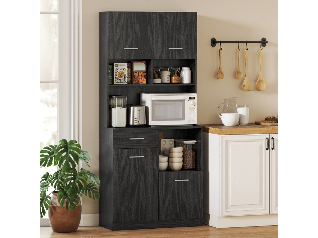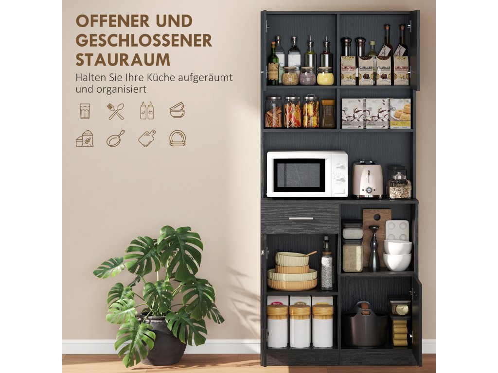 Tato stylová skříňka je skvělou kombinací uzavřených a otevřených přihrádek, doplněných velkorysou povrchovou plochou. Užijte si pohodlí dvířek s tichým zavíráním a bezpečnost pojistky proti převrácení. Díky modernímu vzhledu a elegantním stříbrným úchytkám dodá každé místnosti nádech sofistikovanosti. Proměňte svou kuchyň v harmonický a organizovaný prostor.
