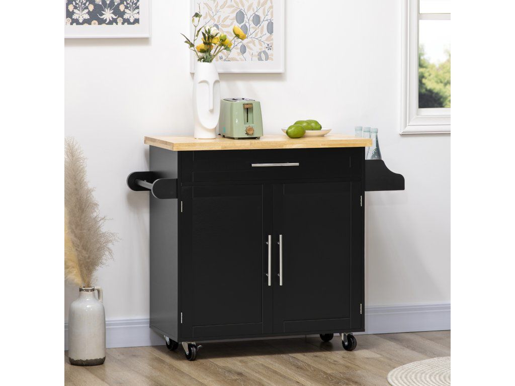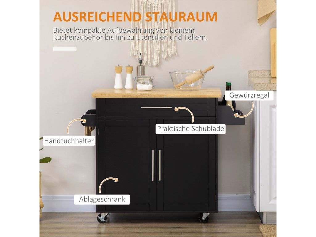 Dostatek úložného prostoru: Velký Zásuvka a uzavřená skříňka nabízejí dostatek prostoru pro kuchyňské náčiní a potraviny. Vozík je vybaven držákem na koření a věšákem na ručníky.
