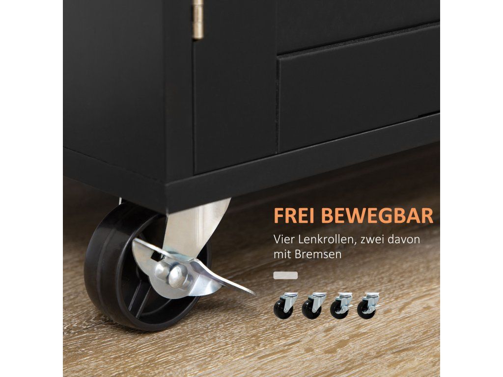 Mobilní: Díky 4 otočným kolečkům se kuchyňský vozík s pracovní deskou snadno přemisťuje. Dvě aretační brzdy umožňují snadné zajištění vozíku.