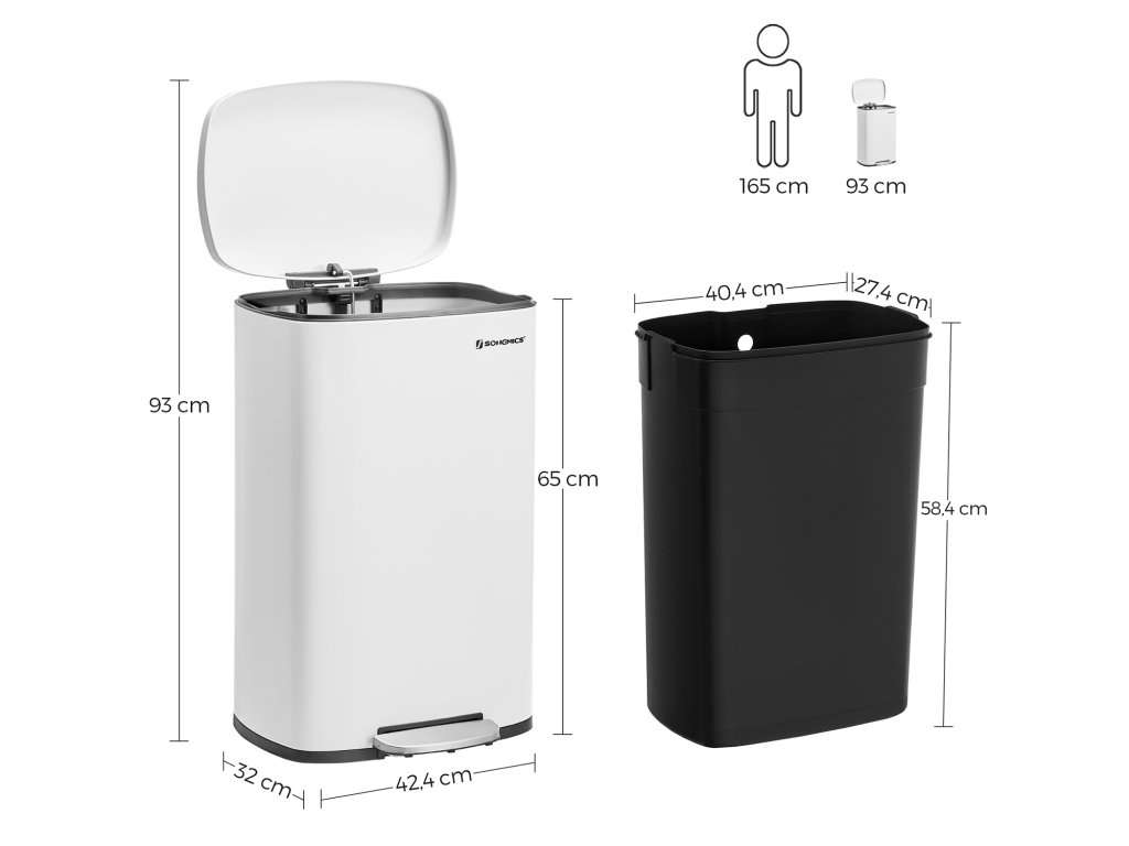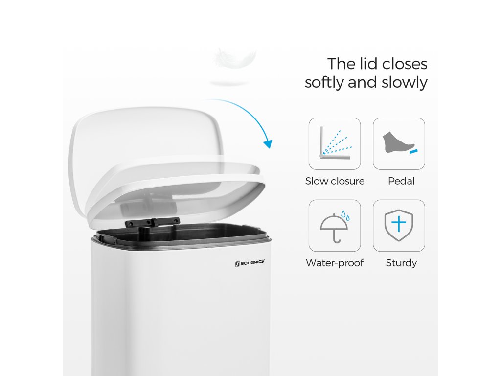 Proměňte místo, které budí pozornost, v místo, které přitahuje pozornost: Není důvod, aby odpadkový koš vypadal ošuntěle. Tento pedálový odpadkový koš o objemu 50 litrů se stane součástí designu vaší kuchyně - od elegantní bílé barvy až po čisté linie.Má to i měkkou stránku: Kuchyňský koš je sice vyroben z pevného kovu, ale je šetrný - díky tlumicímu mechanismu se víko zavírá jemně, pomalu a tiše, bez hlasitého řinčení.Udržujte ho otevřený: Pokud uklízíte po velké večeři, snadno udržujte víko otevřené úplným zvednutím víka; po použití ho jednoduše rukou jemně zavřete, abyste udrželi pachy na uzdě.Kbelík v koši: Tento odpadkový koš obsahuje odnímatelný kbelík s otvorem pro sáček, takže plastový sáček zůstane na svém místě; pokud se sáček náhodou rozbije a vylije, stačí kbelíky vyjmout a snadno je vyčistit;Co získáte: Koš na odpadky o objemu 50 l s plastovým vnitřním kbelíkem, výklopným víkem a pedálovou konstrukcí pro snadné vysypávání odpadu.| Kategorie: | Odpadkové koše |