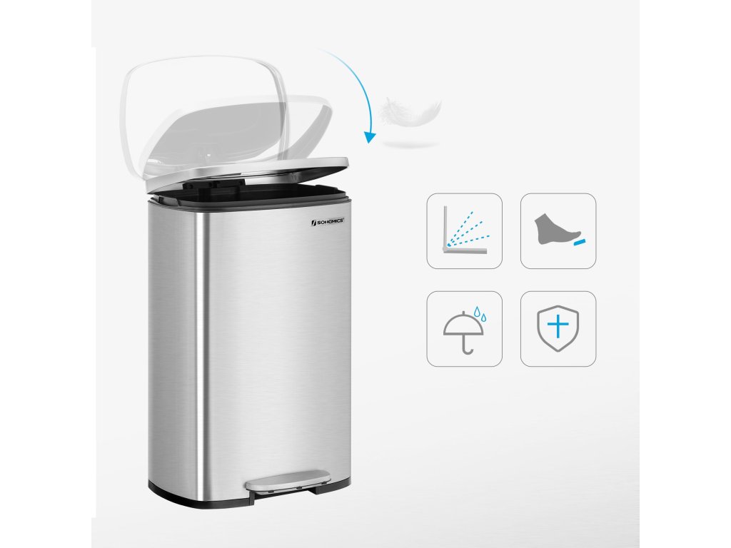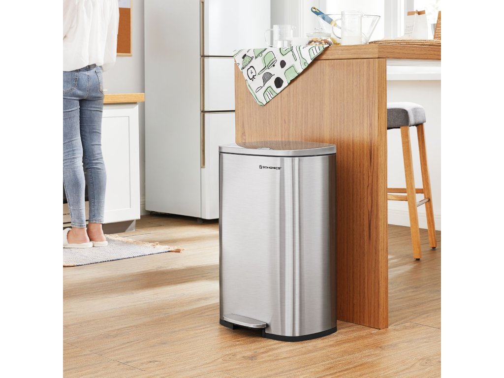 Proměňte místo, které budí pozornost, v místo, které přitahuje pozornost: Není důvod, aby odpadkový koš vypadal ošuntěle. Tento pedálový odpadkový koš o objemu 50 l se stane součástí designu vaší kuchyně - od elegantní stříbrné barvy až po čisté linie.Má to i měkkou stránku: Kuchyňský koš je sice vyroben z pevného kovu, ale je šetrný - díky tlumicímu mechanismu se víko zavírá jemně, pomalu a tiše, bez hlasitého řinčení.Udržujte ho otevřený: Pokud uklízíte po velké večeři, snadno udržujte víko otevřené úplným zvednutím víka; po použití ho jednoduše rukou jemně zavřete, abyste udrželi pachy na uzdě.Kbelík v koši: Tento odpadkový koš obsahuje odnímatelný kbelík s otvorem pro sáček, takže plastový sáček zůstane na svém místě; pokud se sáček náhodou rozbije a vylije, stačí kbelíky vyjmout a snadno je vyčistit;Co získáte: Koš na odpadky o objemu 50 l s plastovým vnitřním kbelíkem, výklopným víkem a pedálovou konstrukcí pro snadné vysypávání odpadu.| Kategorie: | Odpadkové koše |