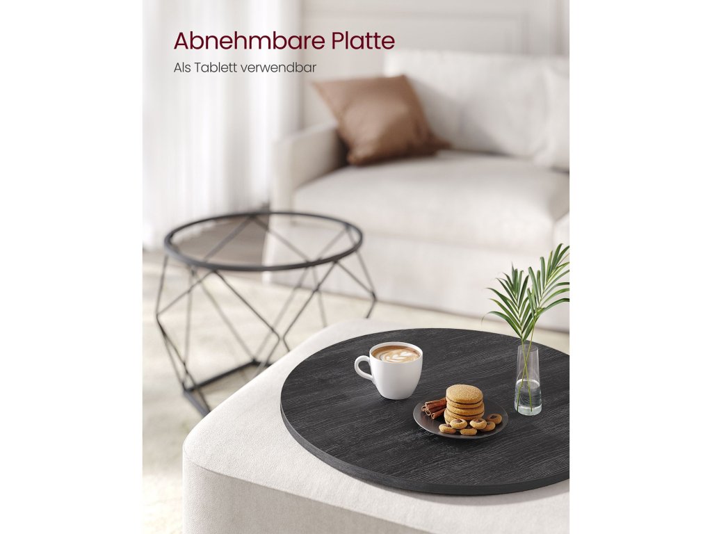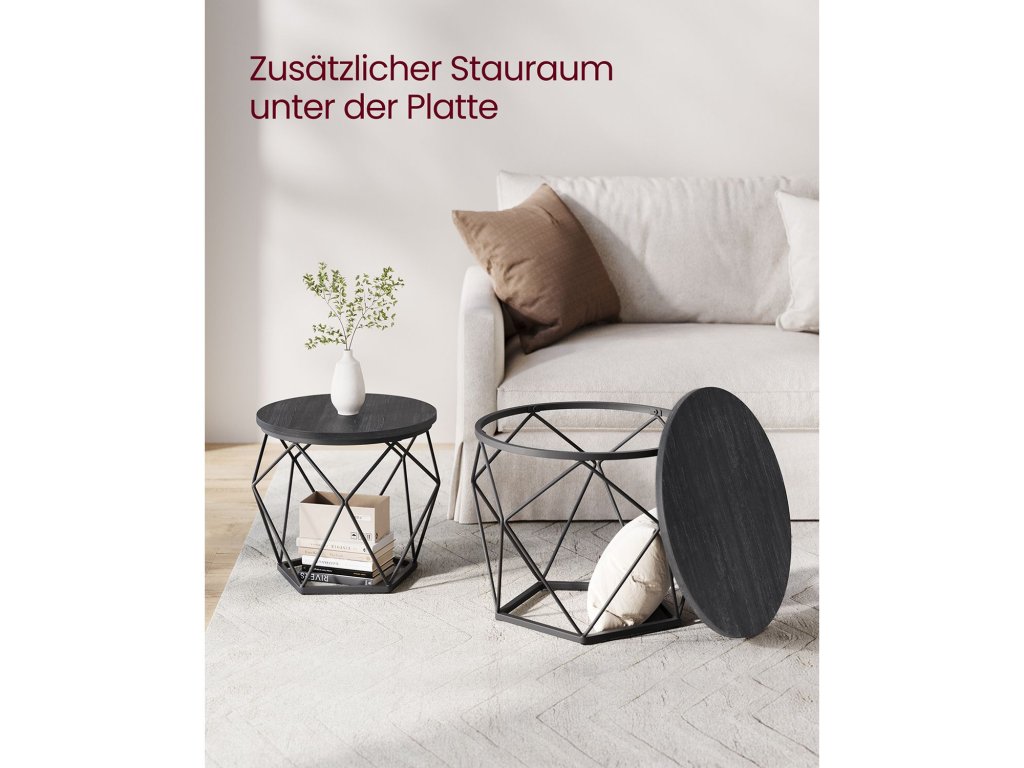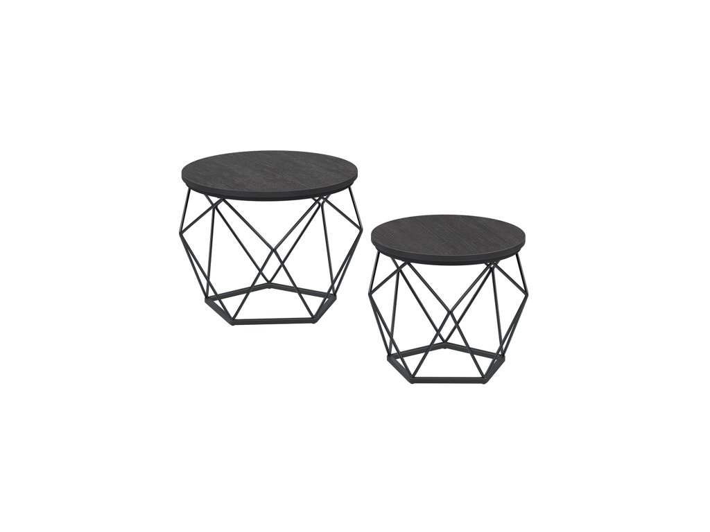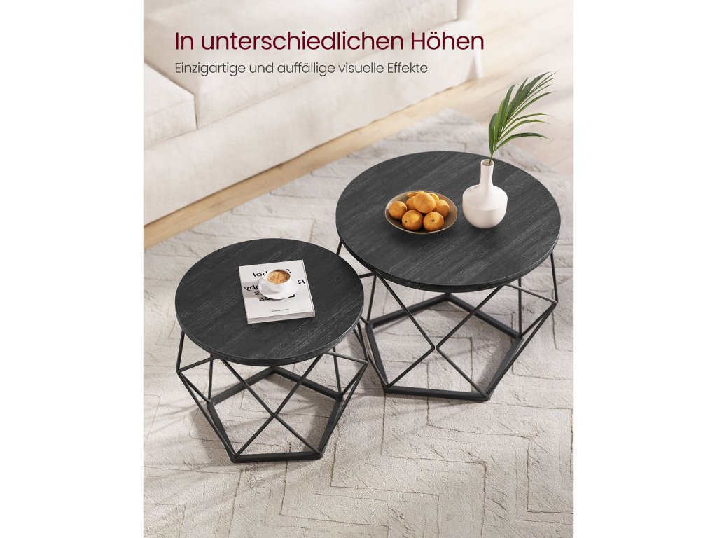 Kulaté konferenční stolky, sada 2 bočních stolků, moderní styl, odnímatelná deska, ocelový rám, do obývacího pokoje, černá.