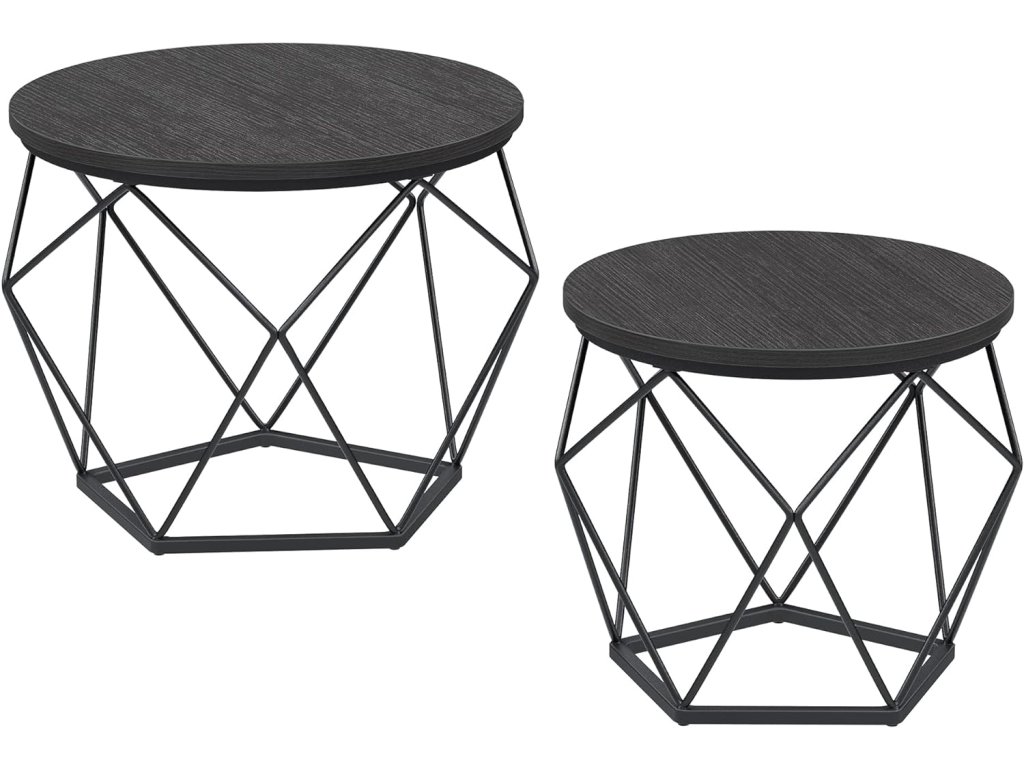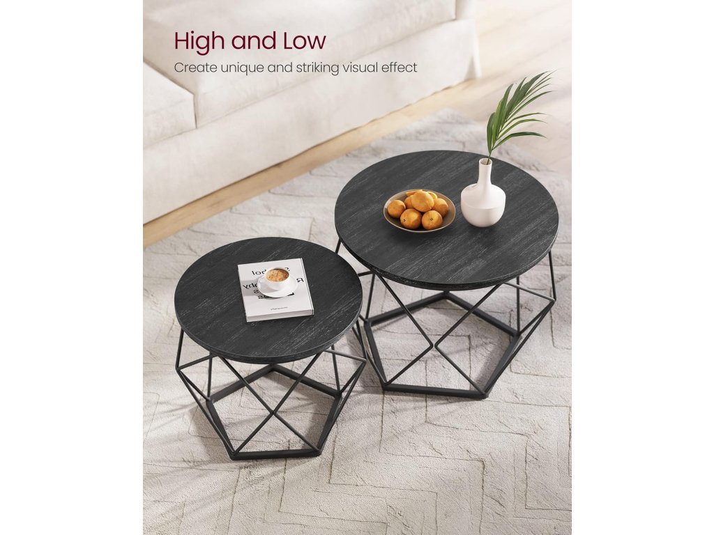 Kulaté konferenční stolky, sada 2 bočních stolků, moderní styl, odnímatelná deska, ocelový rám, do obývacího pokoje, dřevěné uhlí šedé a inkoustově černé.