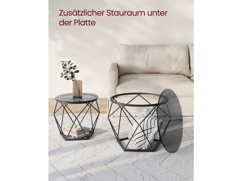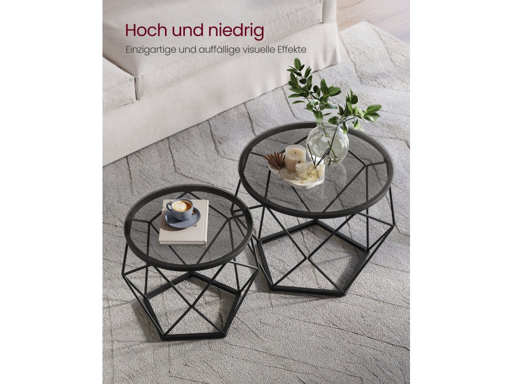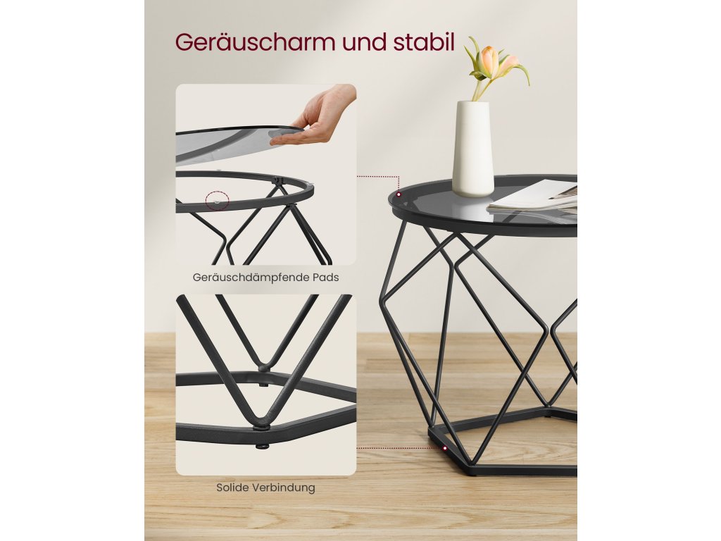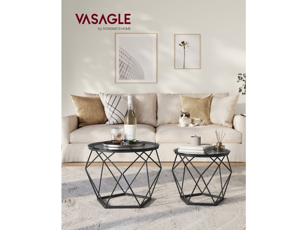Kulaté konferenční stolky, sada 2 stolků, moderní styl, odnímatelná deska, ocelový rám, do obývacího pokoje, břidlicově šedá a inkoustově černá.