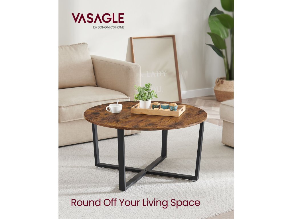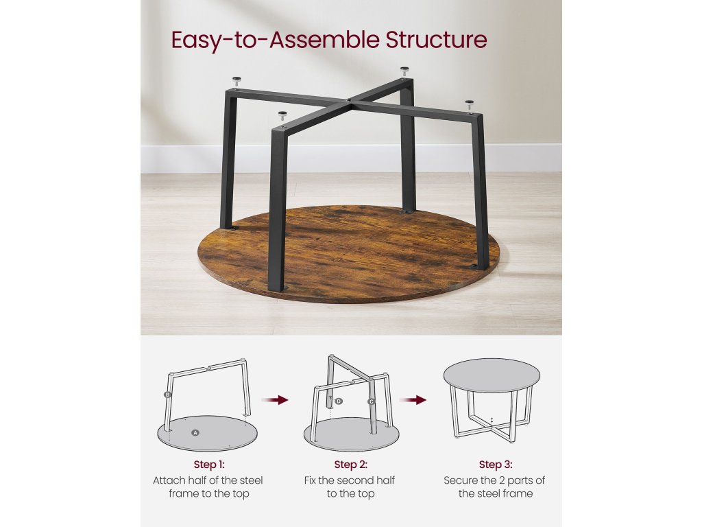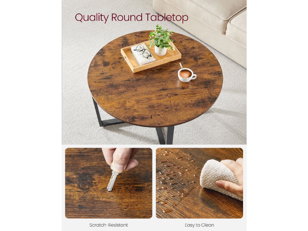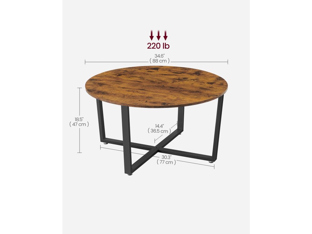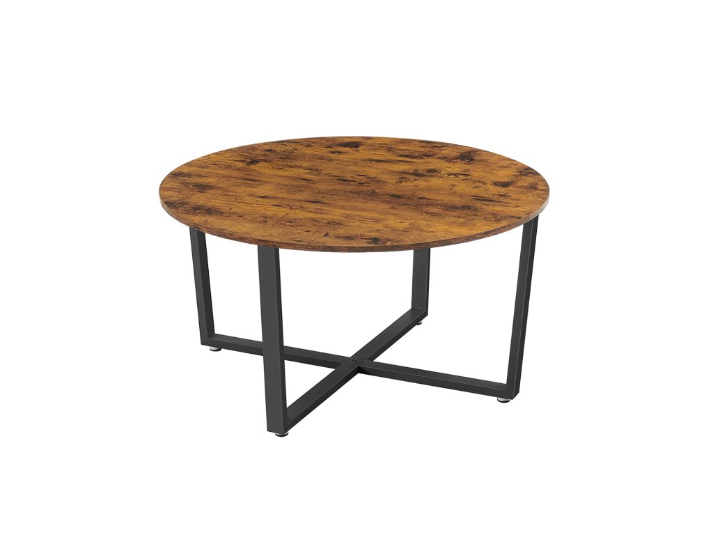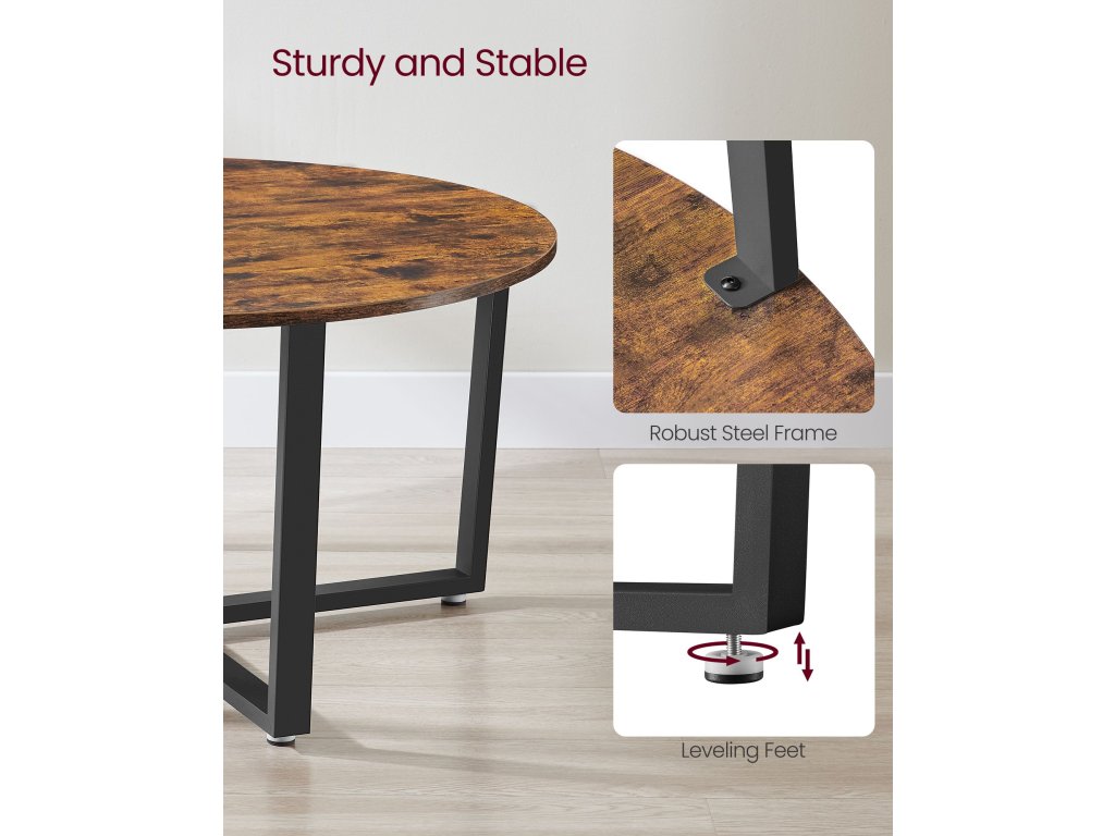 Kulatý konferenční stolek, koktejlový stolek v industriálním stylu, odolný kovový rám, snadná montáž, do obývacího pokoje, ložnice, rustikální hnědá a černá.