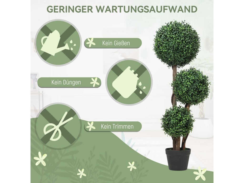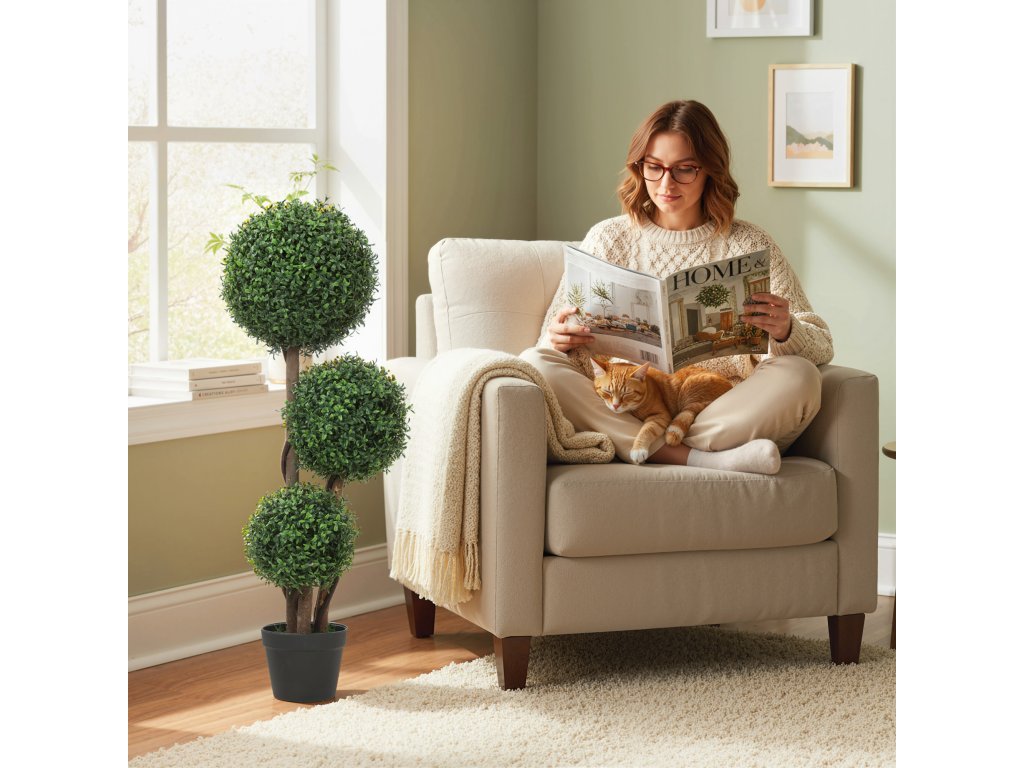 Elegantní design: Přírodní dřevěný kmen nese tři bujné koule z buxusu a vytváří tak vřelé přivítání v jakémkoli prostředí. Tento klasický design dodává naší umělé rostlině lehký nádech a vylepšuje dekoraci vašeho domova nebo kanceláře.