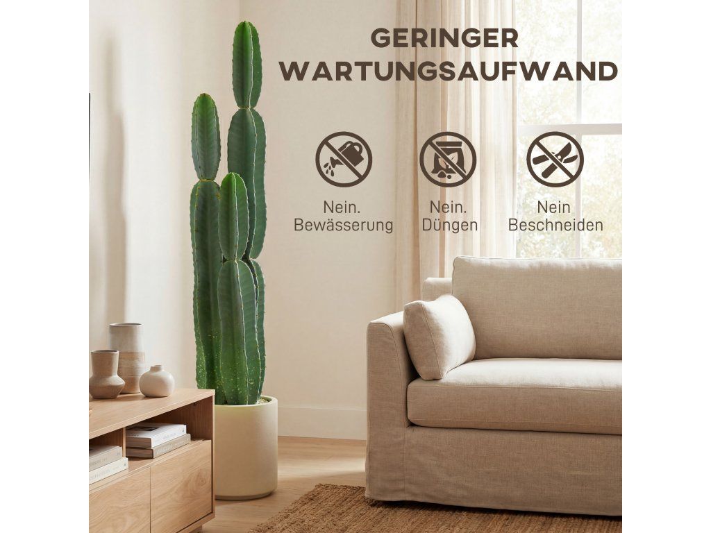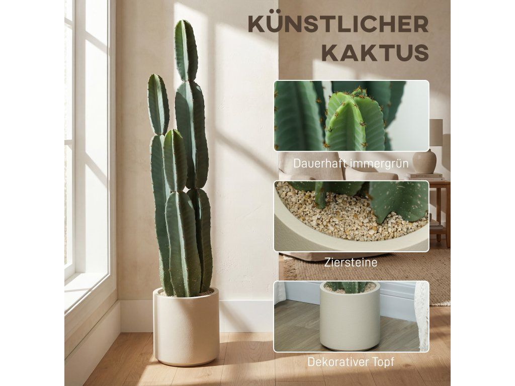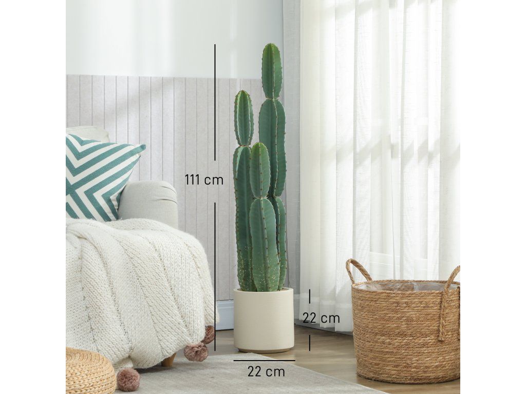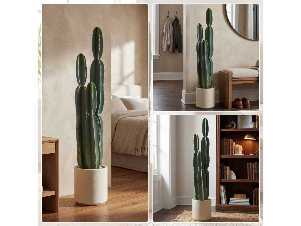 Už vás nebaví prázdné rohy a ponuré vchody? Tento umělý kaktus nabízí perfektní řešení. Dodává se hotový ve vlastním květináči a pyšní se realistickým designem. Nevyžaduje zalévání, prořezávání ani údržbu, okamžitě vnese do každé místnosti svěží zeleň a vytvoří stylový, sochařsky laděný ústřední bod, který vylepší váš obytný prostor.