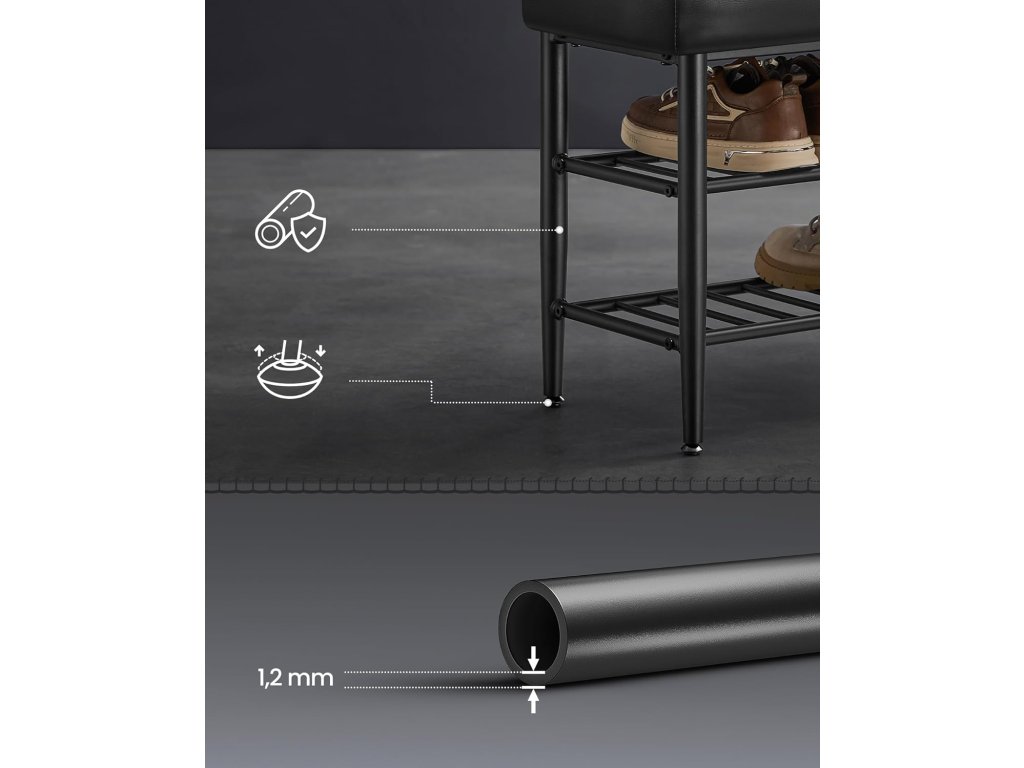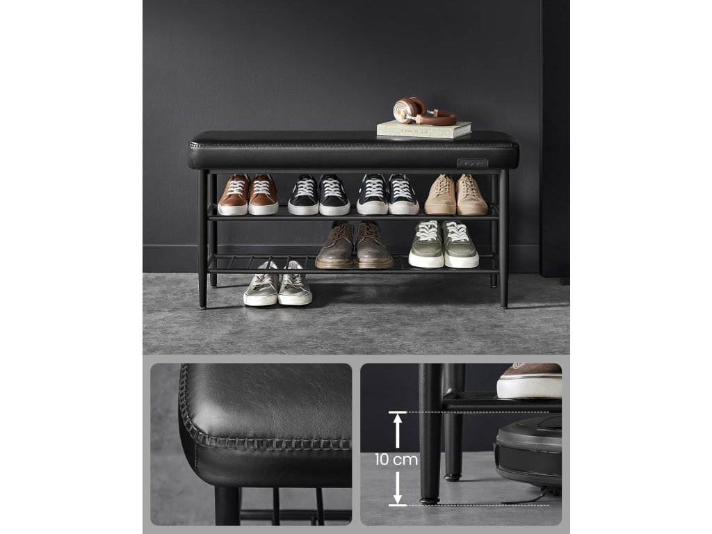 Style Matters Tato lavice na boty z naší kolekce VASAGLE EKHO, která získala ocenění Bronze A' Design Award 2024, kombinuje umělou kůži s důmyslným prošíváním. Oslavuje řemeslnou zručnost a vytváří domov, který vypovídá o vašem stylu. [Pohodlí při každém sezení] Nasaďte si hladký potah a pak se zabořte do vysoce pružné 6 cm silné pěny 25D, která se nikdy nedeformuje. Tato lavička poskytuje vynikající posezení, které odolá času. [Silná a stabilní] Díky robustnímu ocelovému rámu a univerzálním nastavitelným nohám tato polstrovaná lavice na boty snadno unese až 135 kg. Poskytuje pevné a stabilní usazení a je ideální pro začátek nebo konec dne. [Extra úložný prostor, vysavač] Spodní police je 10 cm nad podlahou a má 3 patra pro uložení bot. Kromě toho je dostatečně vysoká, aby robotické vysavače udržovaly váš pokoj čistý a úhledný. [Snadná údržba, snadná montáž] Tato lavice má snadno čistitelný potah z umělé kůže. Srozumitelný návod a přiložené montážní nářadí usnadňují montáž pro maximální pohodlí a komfort.| Kategorie: | Lavice do předsíně |