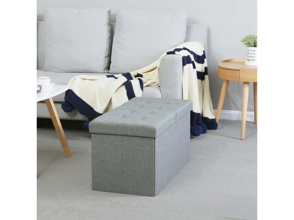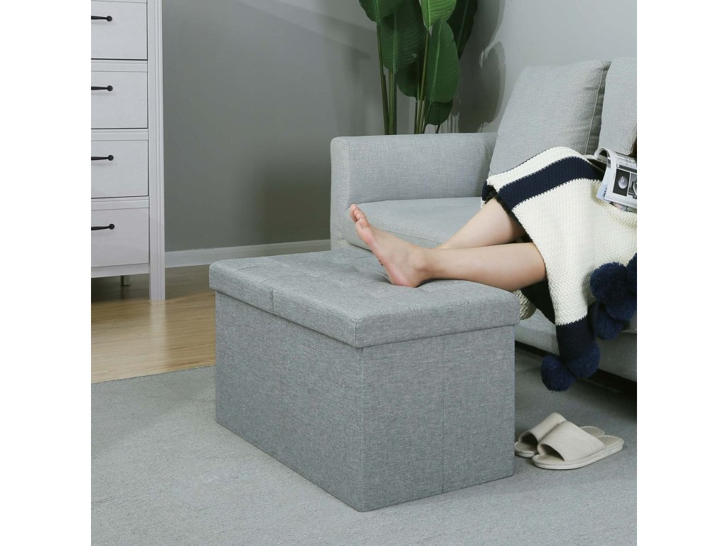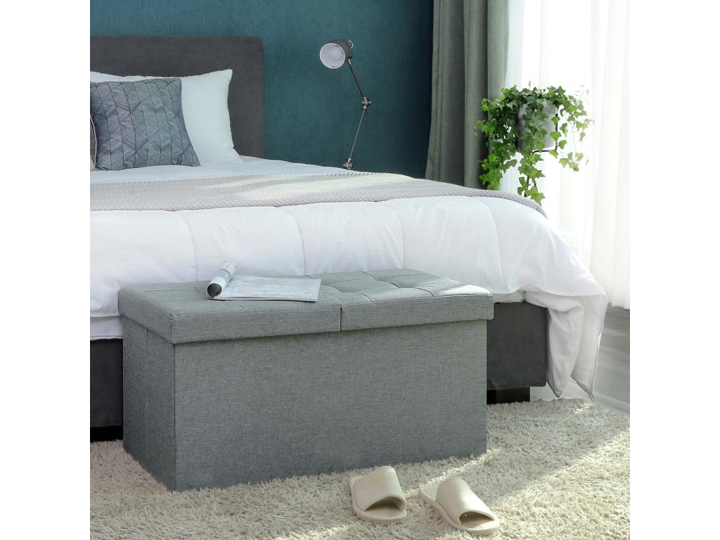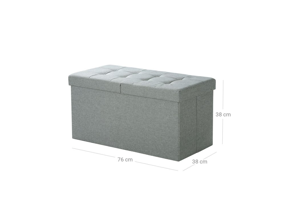 Skládací poloviční víko - vnitřní věci lze snadno a rychle vyjmout, aniž by bylo nutné těžké víko zcela odstranit, což je velmi praktické; díky své skládací konstrukci lze sedačku snadno složit, když je omezený prostor, a lze ji prostorově úsporně uložit (např. pod postel);