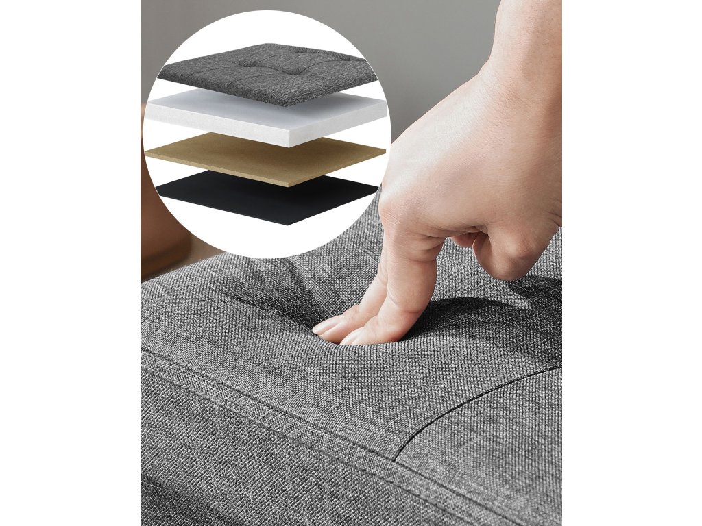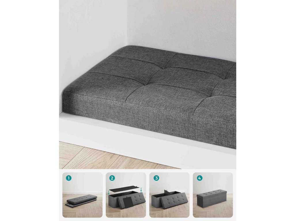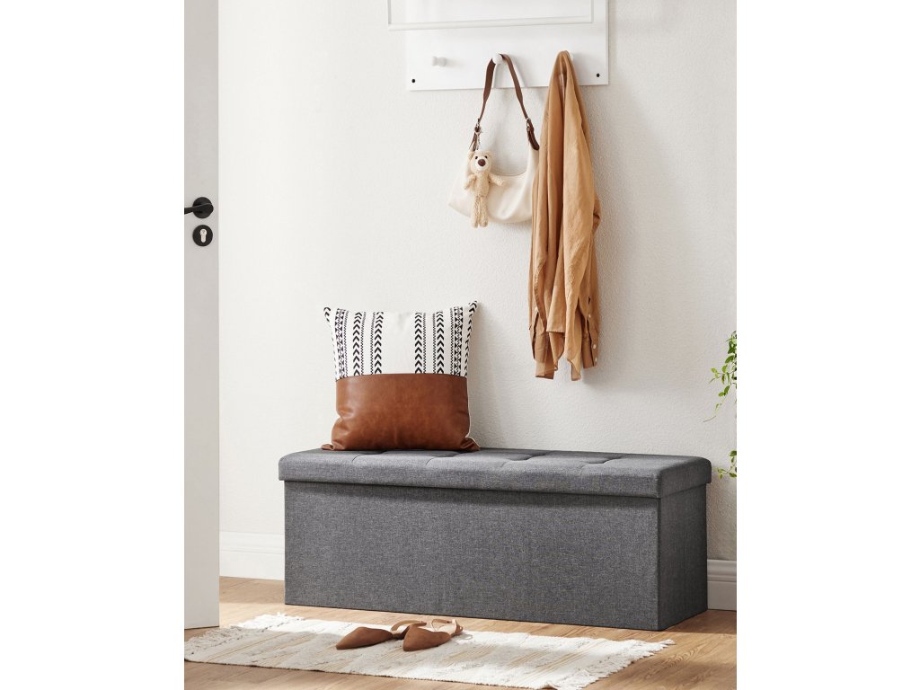 Silné a odolné vlastnosti: vyrobeno z MDF o tloušťce podle normy E1, vynikající lněné tkaniny a polstrovaného polštáře, měkkého a odolného proti vlhkosti. Žádná deformaceSkrytý úložný prostor: spousta úložného prostoru uvnitř jako praktický úložný box. Objemný prostor 150 l, do kterého se schová nepořádek, perfektně se do něj vejde oblečení, hračky, časopisy, deky, lůžkoviny.Dvojité pohodlné sedadlo: polstrované pěnou s vysokou hustotou, měkké a velmi pevné na sezení. Maximální nosnost je až 300 kgMimořádně snadná montáž: dodává se v plochém balení, montáž zabere jen několik sekund. Skládací konstrukce umožňuje sbalení, když se nepoužívá.Jednoduchý a dekorativní vzhled: jemný a všestranný kus lavičky lze použít jako noční stolek, knihovnu nebo stoličku na nohy, dokonale se hodí k vašemu nábytku v obývacím pokoji, ložnici nebo obývacím pokoji.| Kategorie: | Lavice do předsíně |