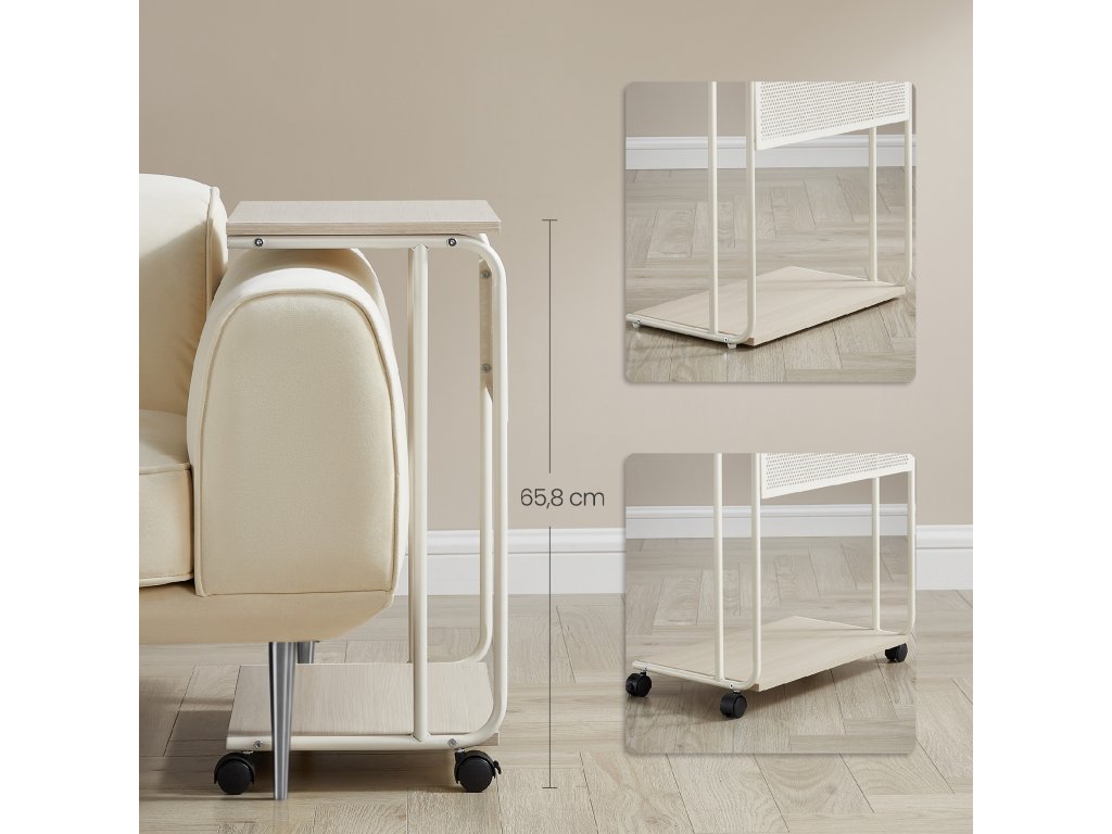Stůl ve tvaru C - Jedinečný boční stolek ve tvaru C má hnědé rustikální desky a černý kovový rám. Rozměry položky jsou 550 x 340 x 660 mm. [Více funkcí] - Tento koncový stolek se může pochlubit velkou deskou o rozměrech 550 x 320 mm a přiměřenou výškou 60 mm (bez koleček), která se skvěle hodí pro notebook, stolování nebo jako příležitostný stolek. Na háčky lze umístit boční desku s otvory a zavěsit na ni některé věci. [Snadné přemisťování] - Stůl je vybaven kolečky, takže ho můžete všude přemisťovat. Lze jej také vložit do spodní části pohovky nebo postele. [Vyrobeno na dlouhou dobu] Tento stolek C je vyroben z robustního ocelového rámu a kvalitní dřevotřísky a je dostatečně odolný, aby vám sloužil i v příštích letech. [Snadná montáž]: Balení obsahuje veškerý potřebný hardware a návod k použití krok za krokem, takže montáž je snadná. Můžete ji snadno sestavit a začít si užívat úložný prostor navíc a rustikální kouzlo, které přináší.| Kategorie: | Odkládací stolky |