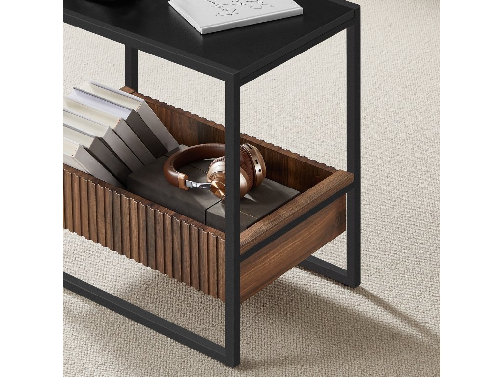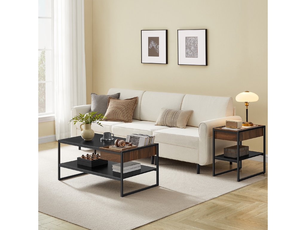 【Moderní design】Černý rám se vzorem dřeva ořechu Columbian dělá tento konferenční stolek jednoduchým, ale elegantním. Zásuvka je navržena s mřížkovým panelem, který opticky dotváří finální dojem.