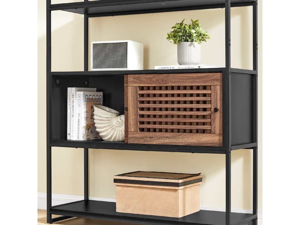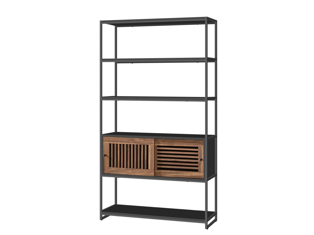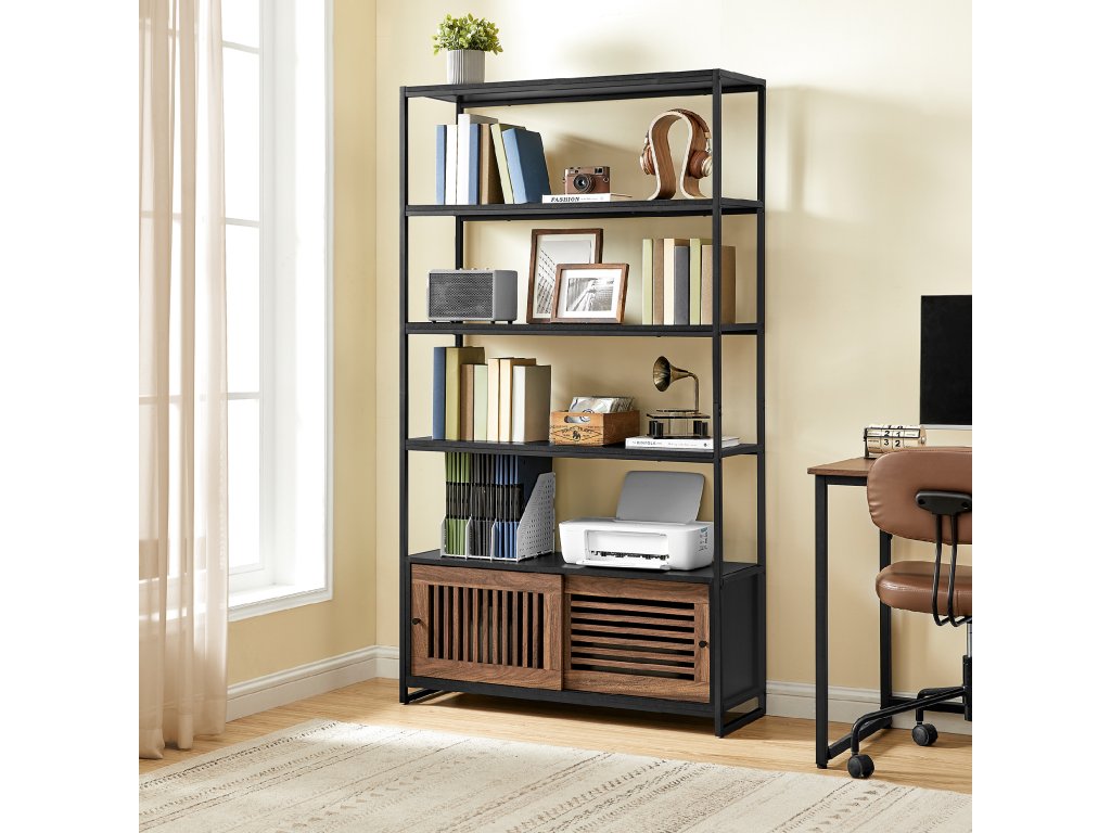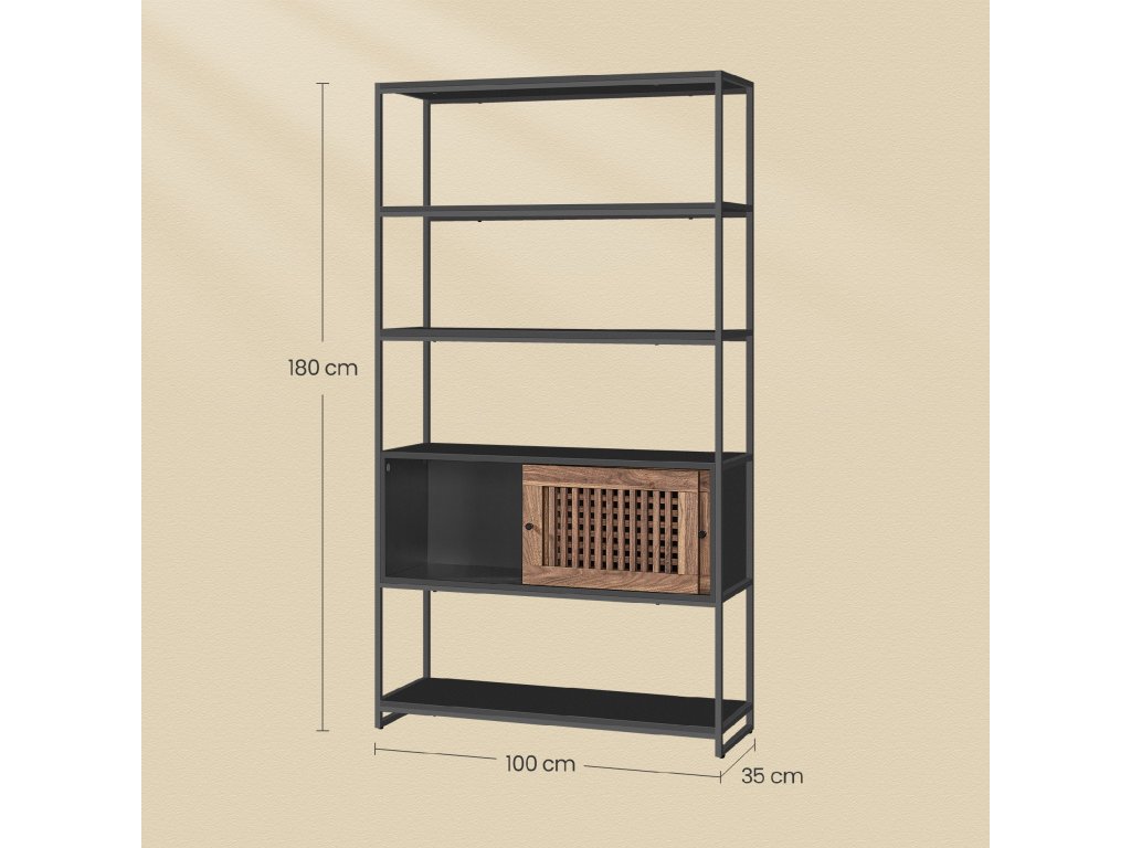 Regál s nastavitelnou skříňkou, knihovna 100x35x180cm v černo-hnědé barvě.