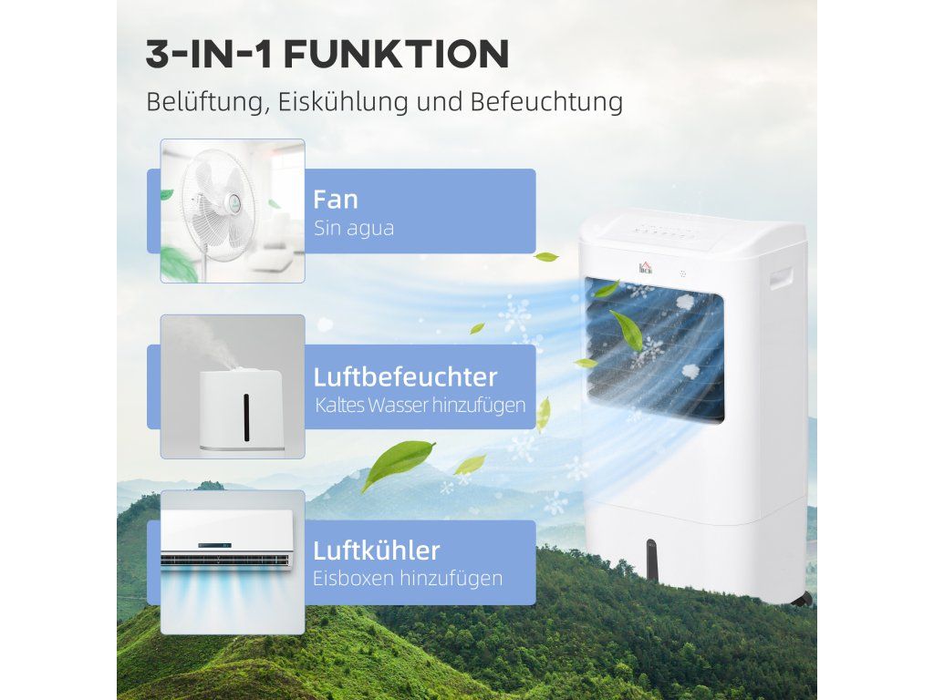 ✔ Tři funkce: ventilátor, chladič ledu a zvlhčovač.