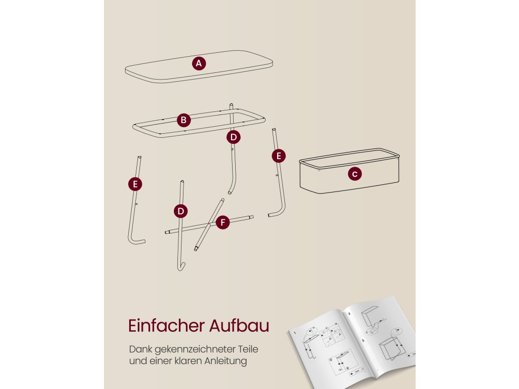 Rychlá a snadná montáž Díky jednoduché konstrukci a jasnému návodu lze tento stolek sestavit za 5-10 minut.Potěší malé prostory Koncový stolek o rozměrech 17,7" x 19,7" a s košem o rozměrech 15,6" x 7,2" dokonale zapadne do malých prostor, kde zabere málo místa a zároveň nabízí dostatek úložného prostoru. Můžete ho použít jako odkládací stolek v obývacím pokoji nebo jako noční stolek v ložnici.Robustní a stabilní Robustní deska z dřevotřísky je připevněna k rámu, aniž by se kývala. Jednodílné ocelové nohy ve tvaru písmene U poskytují pevnou oporu. Nastavitelné nožičky zvyšují stabilitu a nepoškrábou podlahu.Kvalitní látkový koš Dvouvrstvý koš z polyesterové tkaniny je vizuálně atraktivní, nemačká se a neobsahuje chemické látky, takže je jeho používání bezpečné. Jeho vzhled připomínající plátno dodává tomuto kulatému stolu punc jedinečnosti.Moderní a jednoduché Tento jednoduchý matně bílý kulatý konferenční stolek s velbloudím hnědým košem dodá vašemu obývacímu pokoji nebo ložnici styl a snadno ho sladíte s různými doplňky. styly nábytku| Kategorie: | Odkládací stolky |