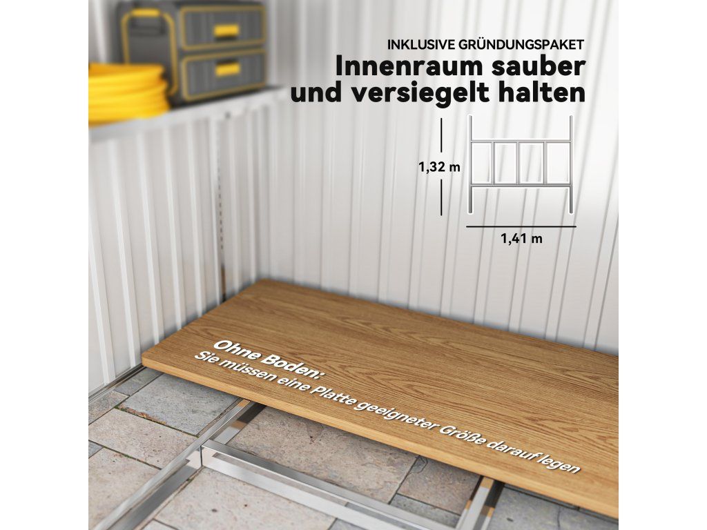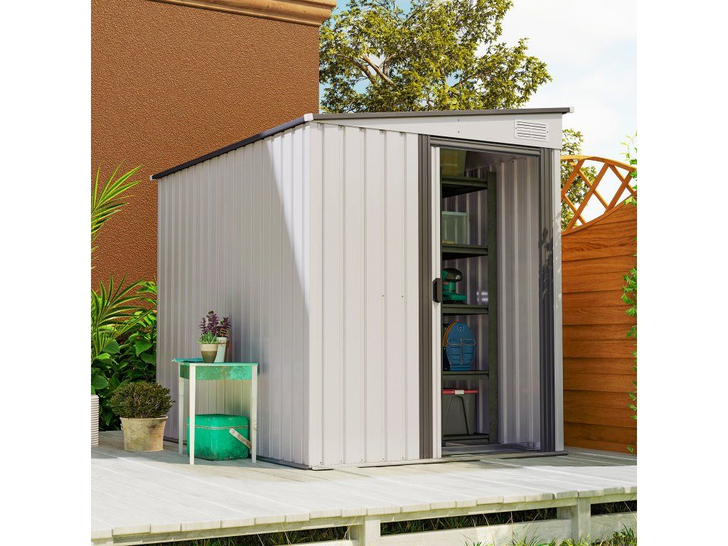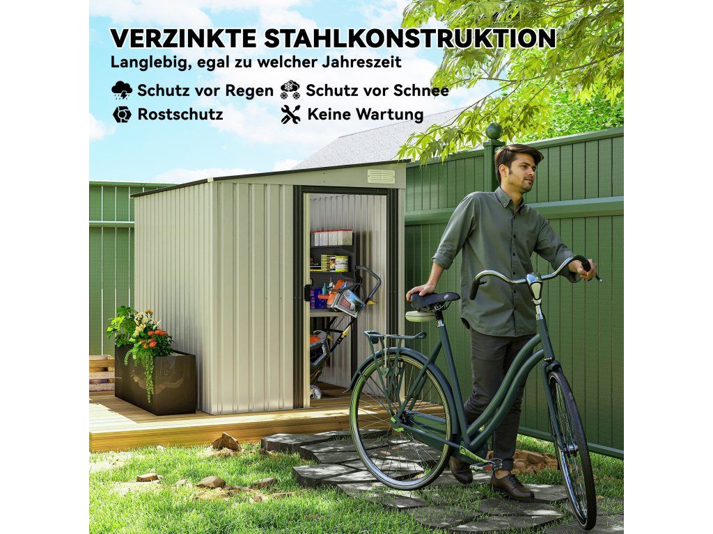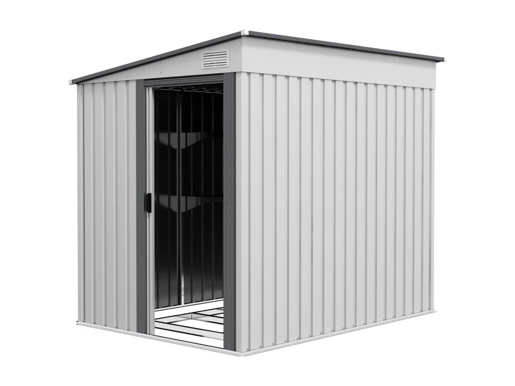 Pozinkovaná ocelová skořepina s posuvnými dveřmi: Tato zahradní kůlna je připravena k okamžitému venkovnímu použití. Je robustní a stabilní, odolná vůči vodě a UV záření. Dveře umožňují snadný přístup.