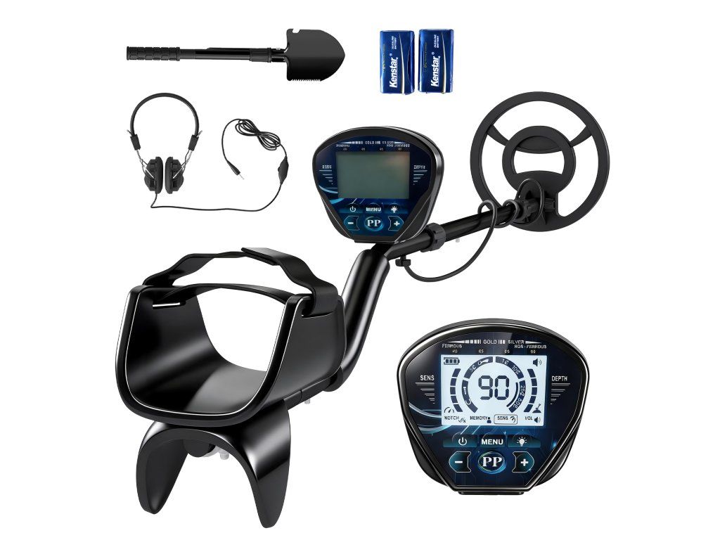 Voděodolný detektor kovů s lopatkou a LCD displayem | černý