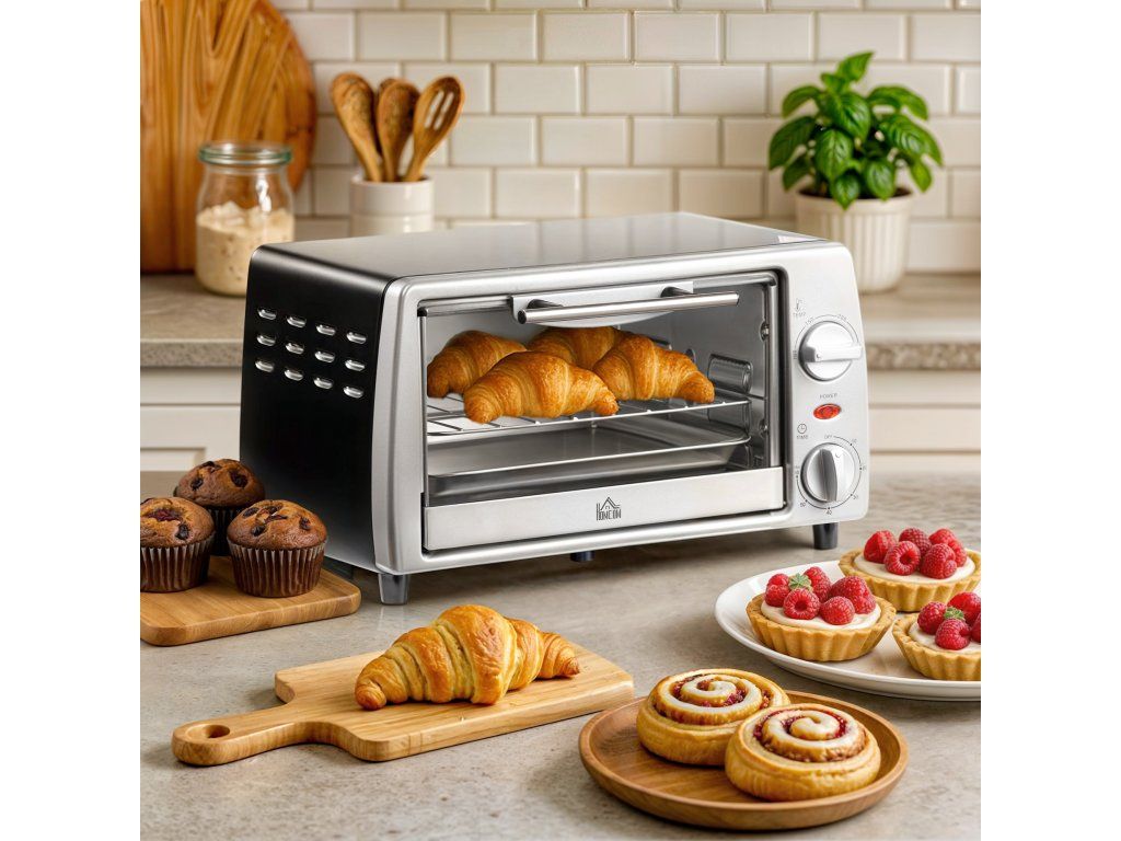 Chcete doma připravit lahodná jídla pro svou rodinu? Vyzkoušejte naši mini troubu. Díky nastavitelné teplotě a časovači si můžete připravit každý pokrm přesně podle svých představ. Díky dvěma nastavením výšky plechu na pečení můžete péct pizzy o průměru až 22 cm a opéct čtyři krajíce chleba. Spodní deska trouby se navíc otevírá směrem ven pro snadné čištění.