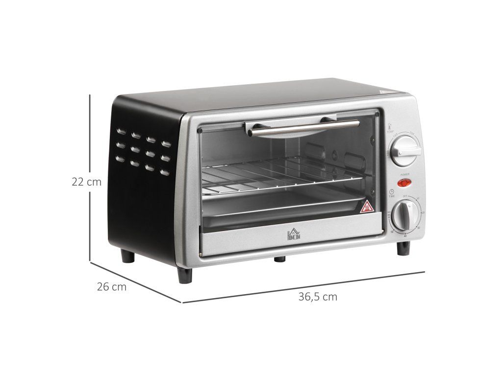 Nastavitelná teplota a časovač: Teplotu této mini trouby lze snadno nastavit od 100 °C do 230 °C. Trouba je vybavena praktickým časovačem 0–60 minut pro nastavení doby pečení.
