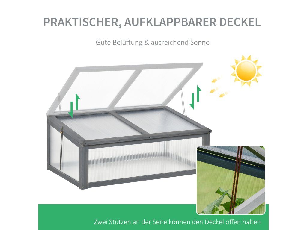Účinná ochrana: Průhledný polykarbonátový panel chladicího rámu účinně chrání vaše rostliny před slabým větrem a mrholením a udržuje je v příjemném teple. Dřevěný mini skleník vytváří optimální teplotní podmínky.
