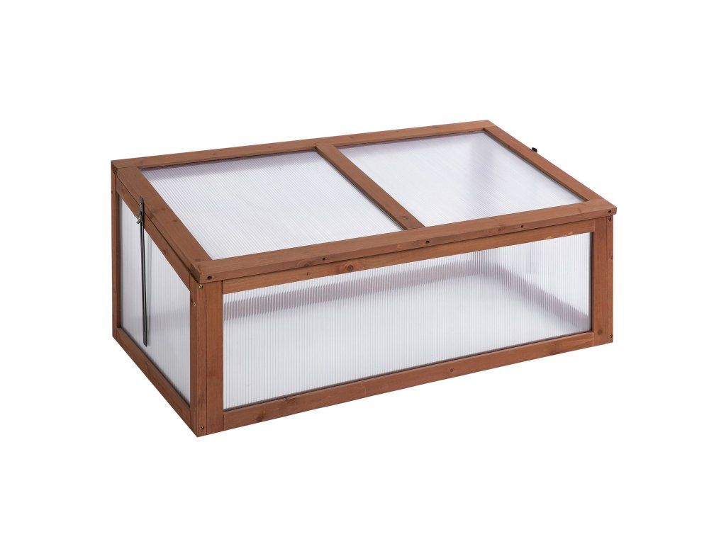 Účinná ochrana: Průhledný polykarbonátový panel chladicího rámu účinně chrání vaše rostliny před slabým větrem a mrholením a udržuje je v příjemném teple. Dřevěný mini skleník vytváří optimální teplotní podmínky.