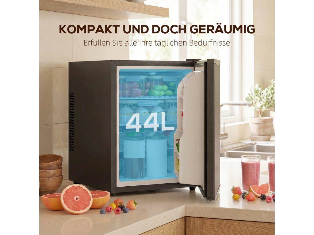 ✔ Objem 44 l se dvěma vyjímatelnými policemi nabízí flexibilní úložný prostor pro položky různých velikostí.