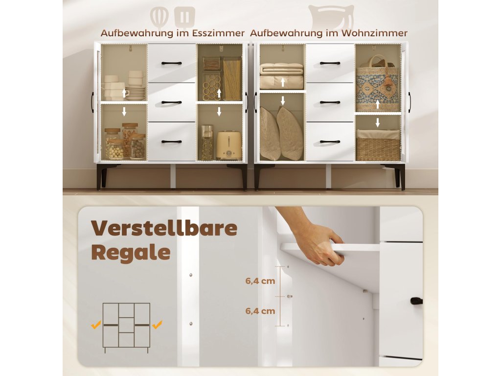 Všestranné využití: Použijte ji jako příborník pro rodinná jídla, jako kavárenský bar na pohodové neděle, jako organizér v předsíni nebo jako vitrínu pro vystavení cenných vzpomínek.
