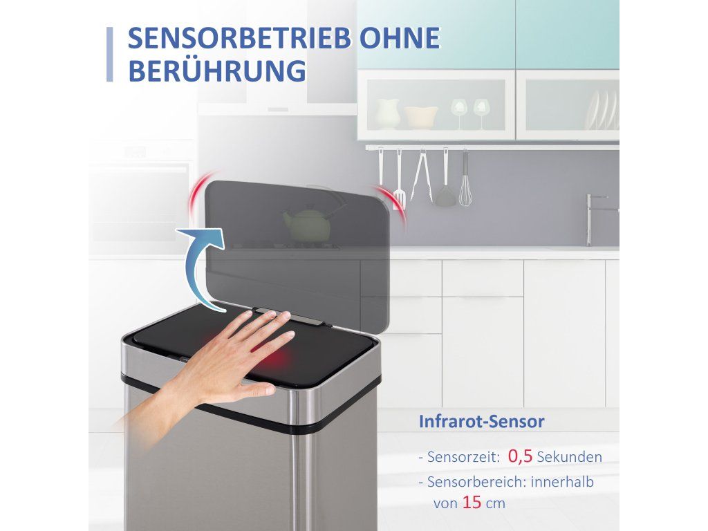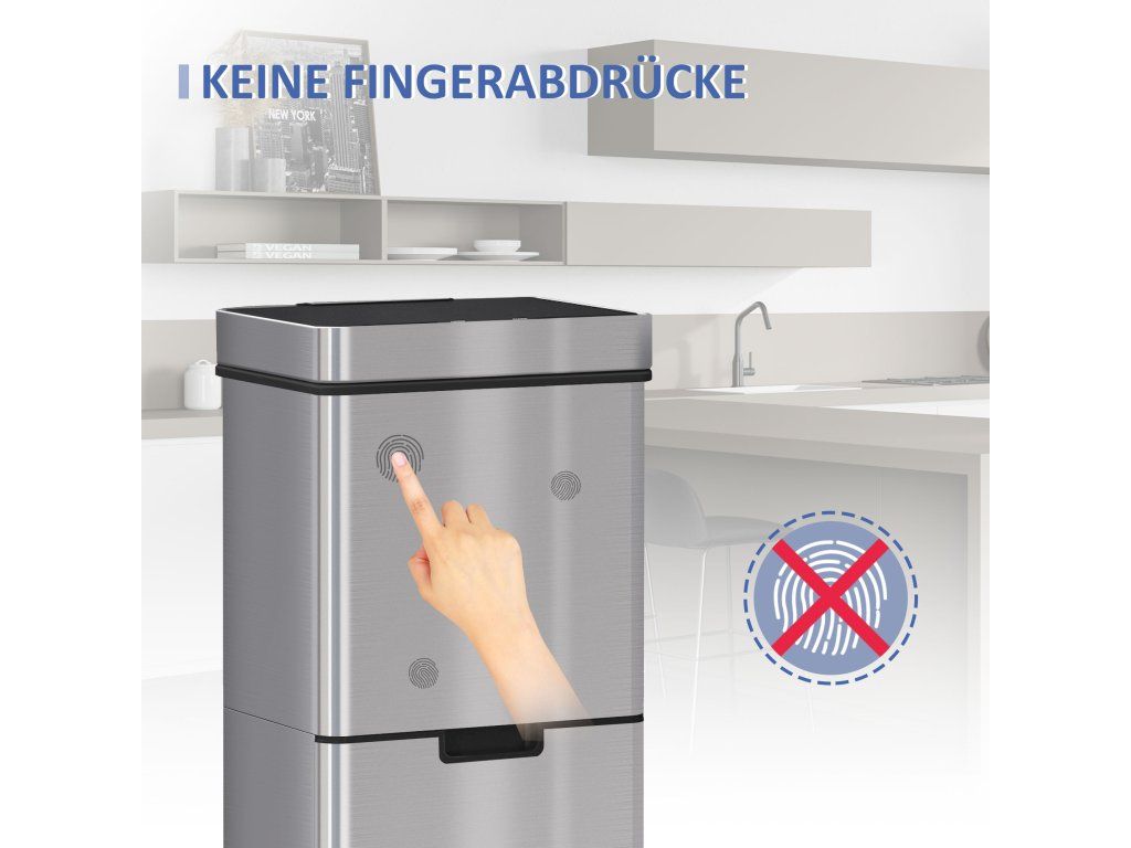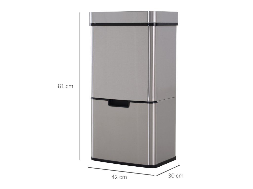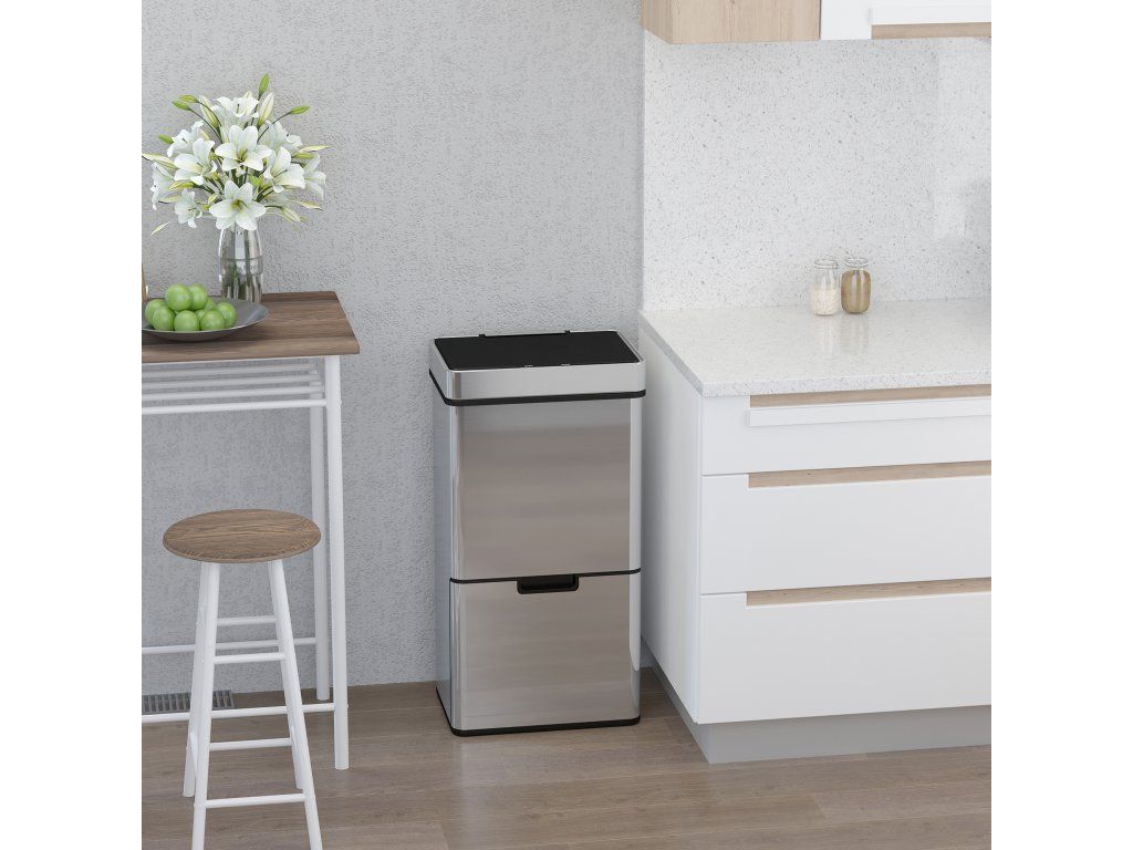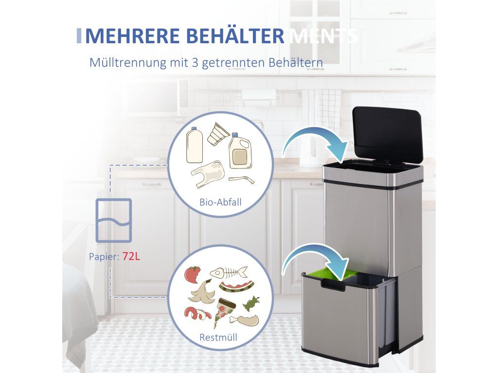 Zlepšená hygiena díky automatickému otevírání: Koš je čistou alternativou do vaší kuchyně. Jakmile se vaše ruka přiblíží k senzoru na vzdálenost 15 cm, koš se automaticky otevře a vysype váš běžný odpad. Ve spodní části se nacházejí dvě další přihrádky, například na bioodpad a lehké obaly určené k recyklaci. Koš je vyroben z nerezové oceli a odolného ABS plastu, je vysoký 81 centimetrů a má celkový objem 72 litrů.