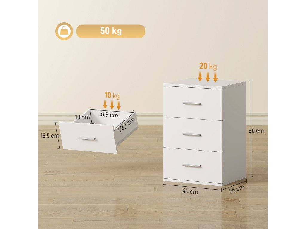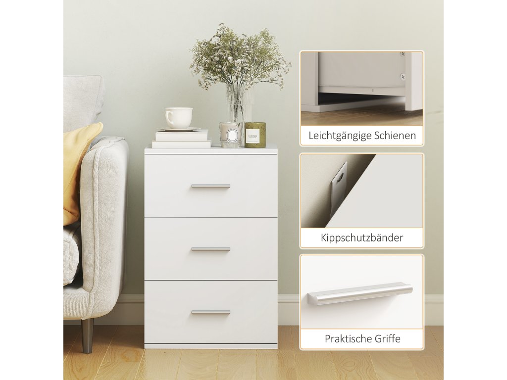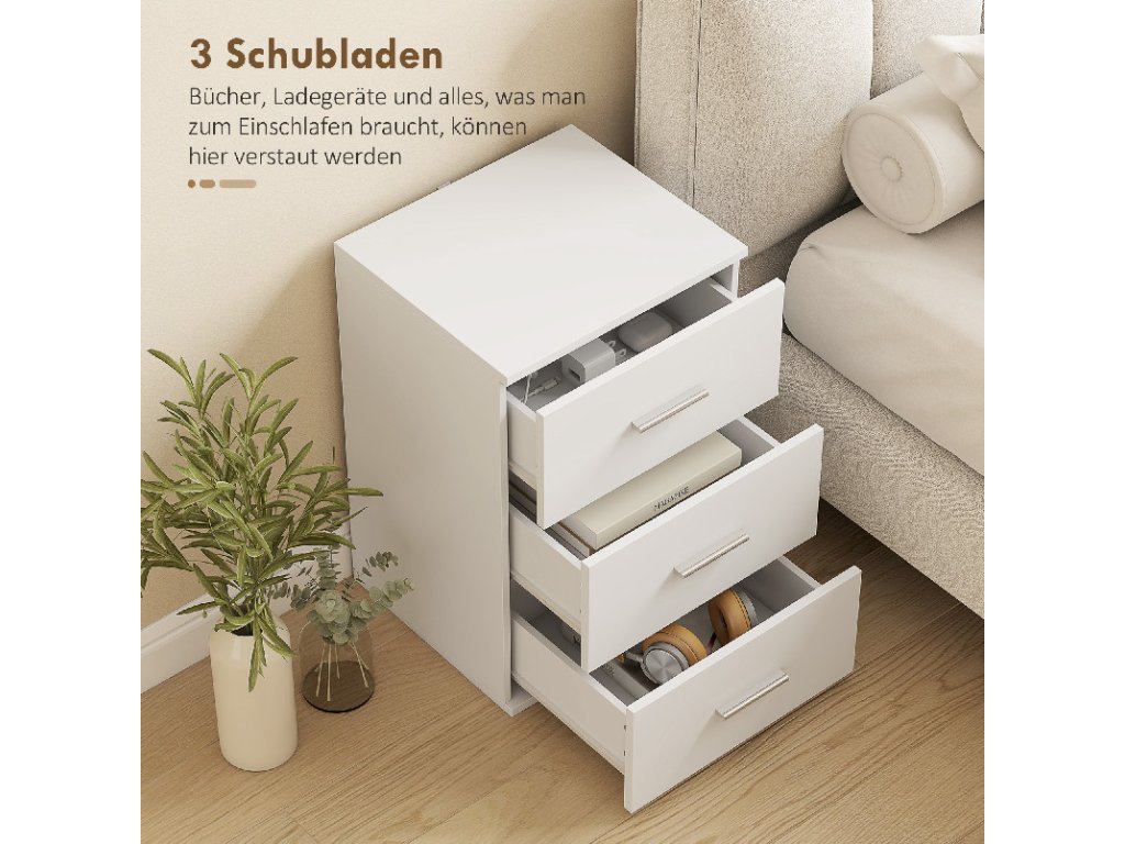 Noční stolek se 3 zásuvkami | bílý