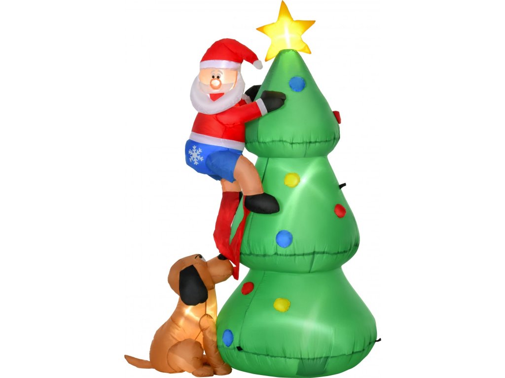 Nafukovací stromek se Santa Clausem a psem | 180 cm