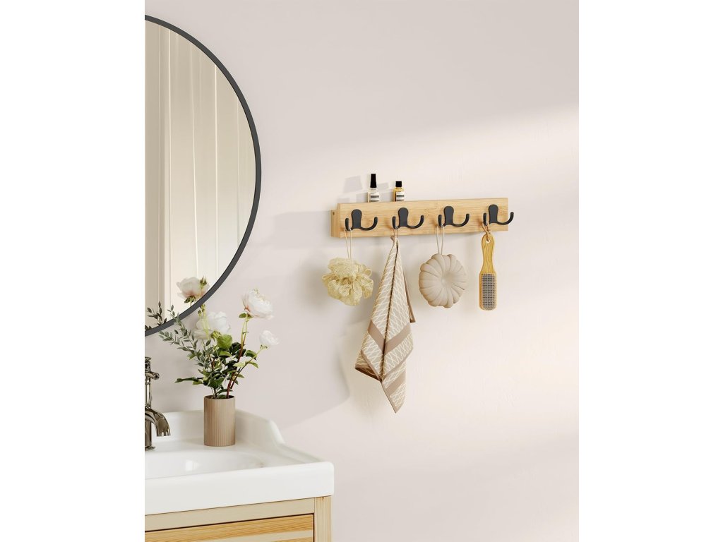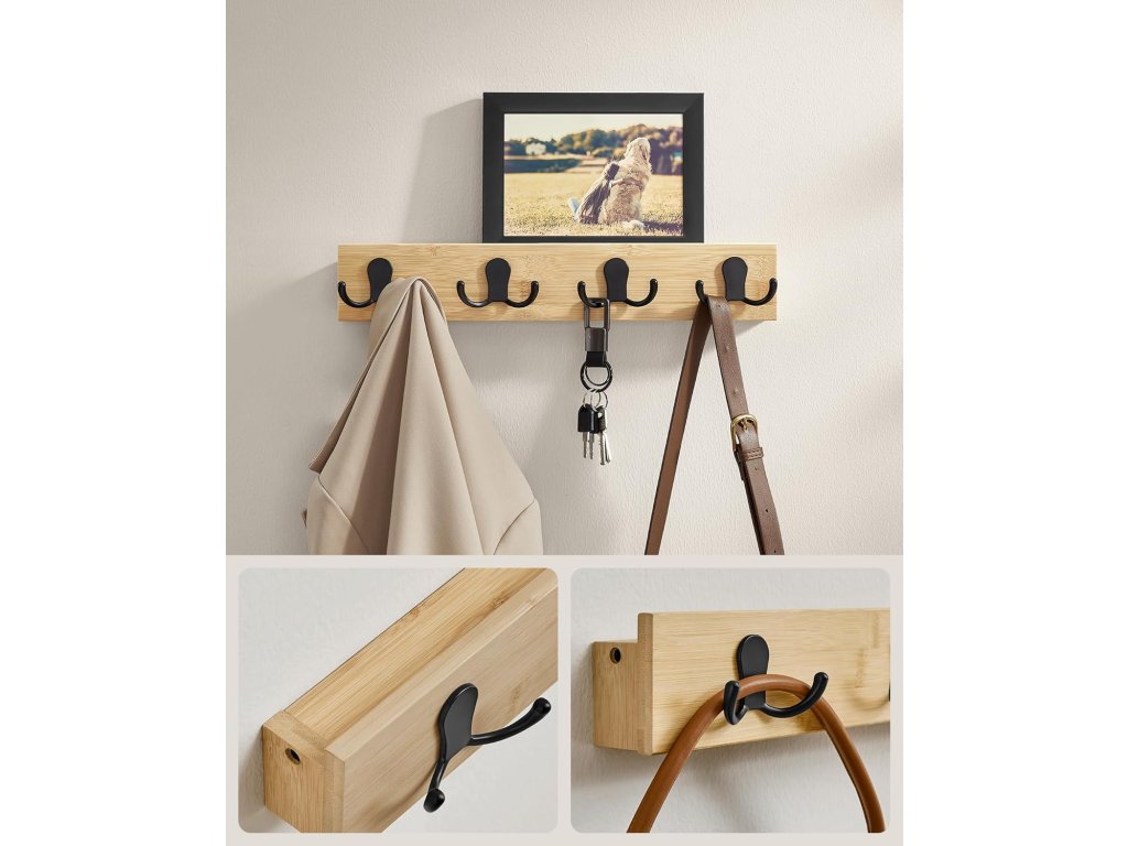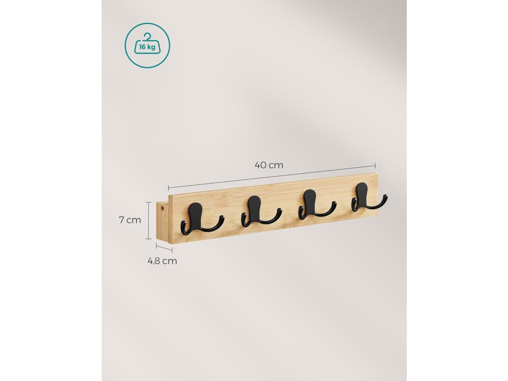 ZUVERLSSIGE STRKEAus natrlichem Bambus und robustem Metall gefertigt, verspricht die Garderobe dauerhafte Strke. Každý dvojitý háček unese až 4 kg, takže skříň unese až 16 kg. Těžké kabáty a doplňky? Žádný problém!.