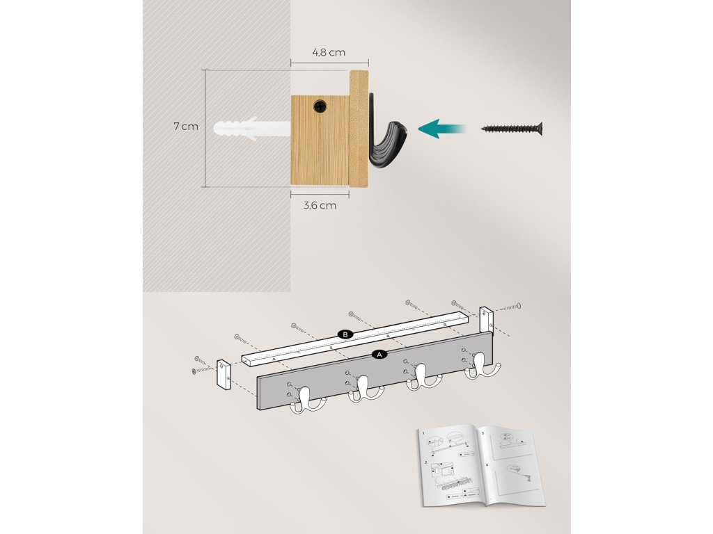 Snadná montáž: tuto nástěnnou polici lze snadno namontovat díky dobře označeným dílům a jasnému návodu (v angličtině není d.). So knnen Sie Ihr Zuhause mit einer praktischen und stilvollen Aufbewahrungslsung aufwerten.| Kategorie: | Věšáky na zeď |