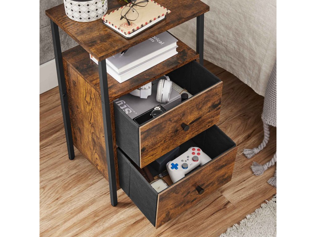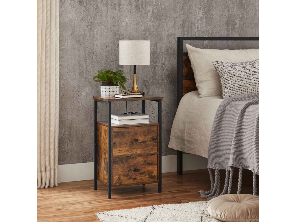 Před usnutím.. Podívejte se na rustikální hnědou barvu v kombinaci s matným černým ocelovým rámem, která dodá vaší ložnici nádech industriální atmosféry. Ano, vedle tohoto nočního stolku na vás čeká sladká noc.