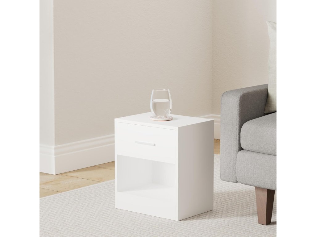 Noční stolky, sada 2 kusů, odkládací stolek se zásuvkou, madlo, otevřená přihrádka, koncový stolek, do ložnice, obývacího pokoje, klasická bílá.