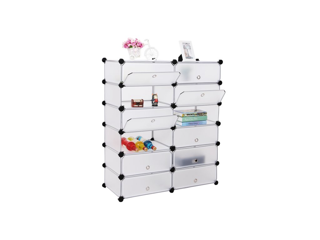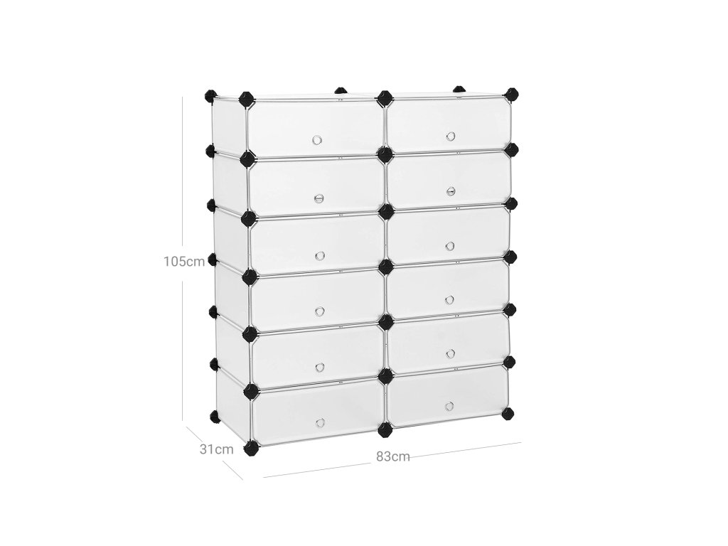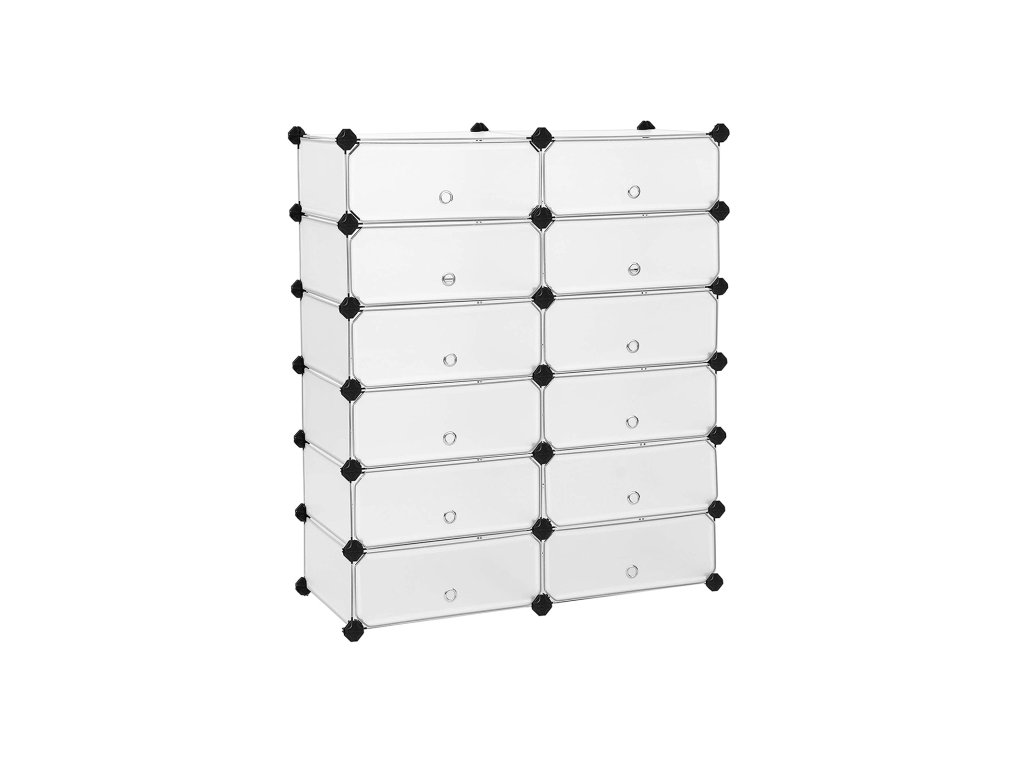 Obdélníkový úložný organizér, 12 slotů, modulární úložný regál pro kutily, 40 x 30 x 17 cm pro každý slot, kovová drátěná skříň, bílá.