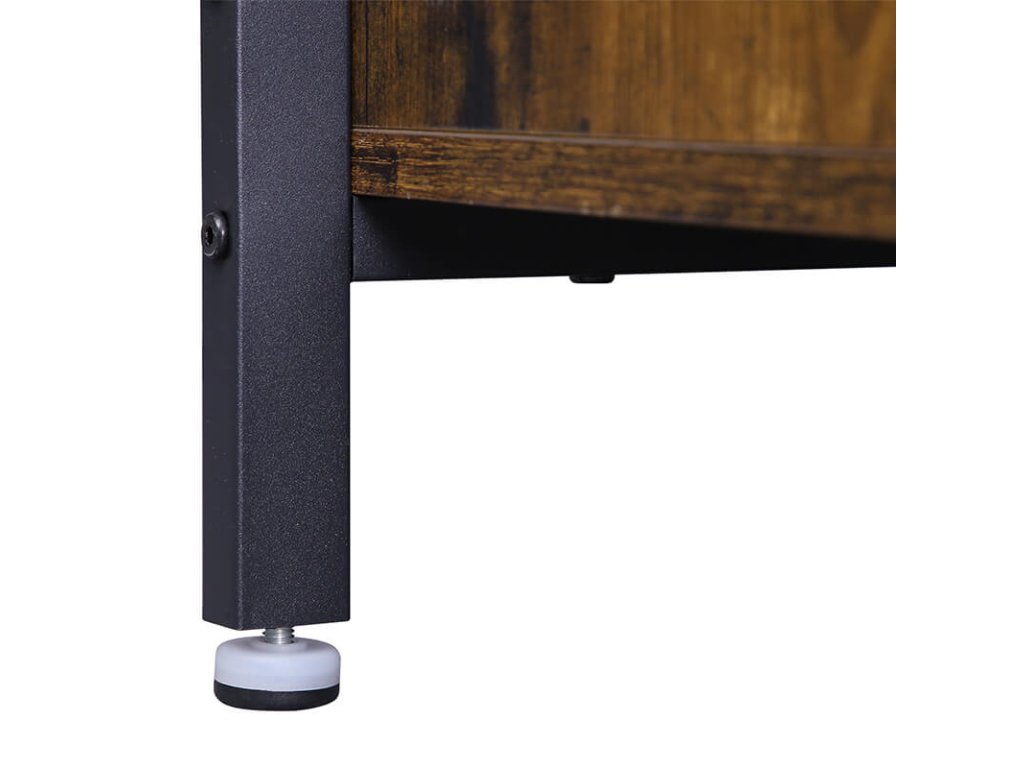 Chcete si vyzkoušet industriální styl? Vyberte si tento! Černý ocelový rám zvyšuje pocit vyrovnanosti a rustikální hnědé umělé dřevo dodává pocit přírody. tato skříň spojila tyto dva typy materiálů dohromady a plně vykazuje dobře strukturovaný smysl pro pořádek, který je klasickým znakem nábytku v industriálním stylu.