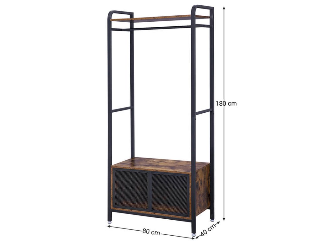 Máte příliš mnoho věcí bez domova? Žádný problém! Oblečení nebo šátky lze snadno zavěsit na kolejničky, osobní věci nebo boty můžete uložit do skříňky nebo na její vrchol. a horní deska se v případě potřeby hodí.