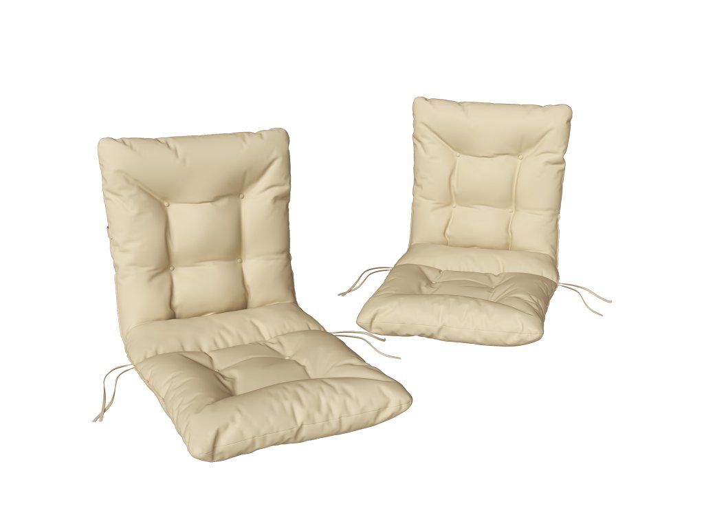 Unikátní design: Dva béžové venkovní sedáky s propojeným opěradlem a sedákem poskytují bezproblémovou oporu. Rozměry: 50 x 120 x 8 cm, vhodné pro sedadla o rozměrech 50 x 50 cm.