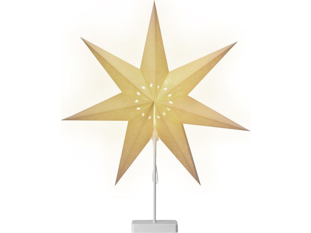 Díky stojanu můžete adventní hvězdu snadno umístit na parapet nebo na stůl a nemusíte ji složitě zavěšovat. 60 cm vysoké skládací papírové hvězdy vytvářejí krásnou vánoční atmosféru . Jsou skládací a lze je skladovat pro úsporu místa. Přihrádka na baterie je skryta v základně.