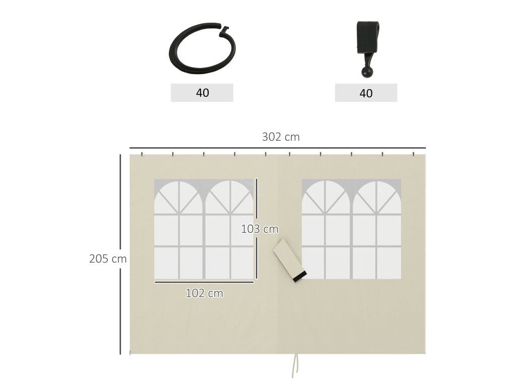 Vybraný materiál: Tyto boční panely altánu jsou vyrobeny z polyesteru 160 g/m², jsou vodoodpudivé a nabízejí UV ochranu UPF 30+. Každý panel je vybaven praktickými popruhy pro snadné upevnění.