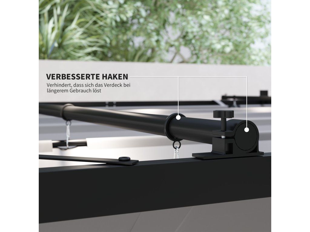 Vylepšené háky: Pergola stříšky 3x3 je vybavena optimalizovanými závěsnými háky, které zajišťují plynulý chod a dlouhou životnost a zabraňují uvolnění stříšky i při delším používání.